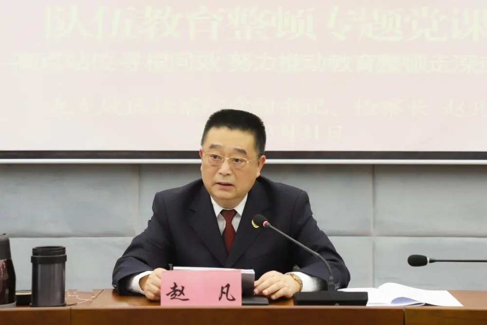 3月31日,九龙坡区检察院党组书记、检察长赵凡结合习近平总书记对政法工作和政法队伍的重要指示精神,就教育整顿的重大意义、相关要求、实现路径等以“高点站位,寻根问效,努力推动教育整顿走深走实”为题,给全院干警上了一堂生动深刻的党课。
