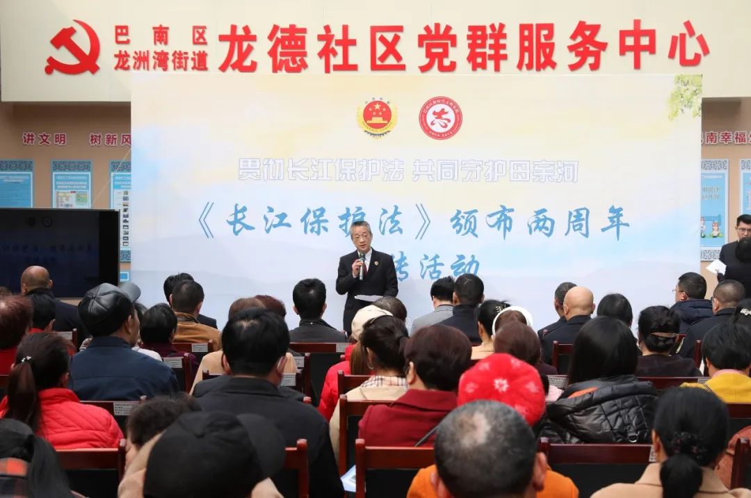 2月27日,五分院、巴南区检察院的长江生态检察官走进龙洲湾街道龙德社区,开展“贯彻长江保护法,共同守护母亲河”暨《长江保护法》法治宣传活动,近百名居民参加。