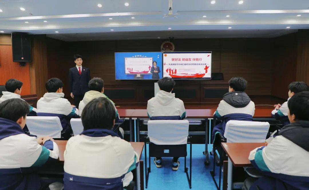 此次“云端法治课”,以城口县检察院的法治教育基地作为特殊的“教室”,屏幕实时连接着远在400公里之外的九龙坡区检察院。