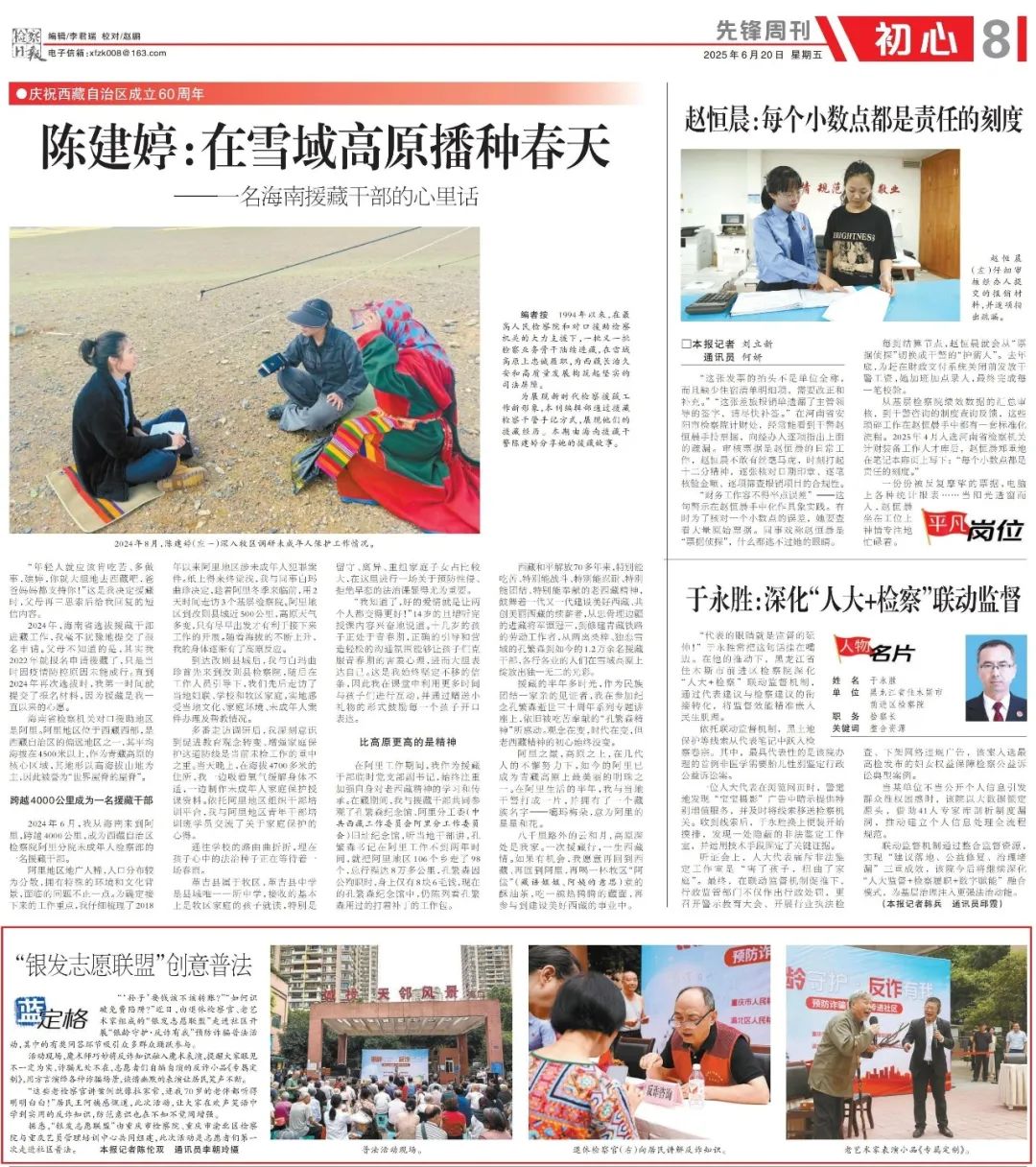 2025年6月20日,《检察日报》第8版刊登《“银发志愿联盟”创意普法》一文,内容如下: