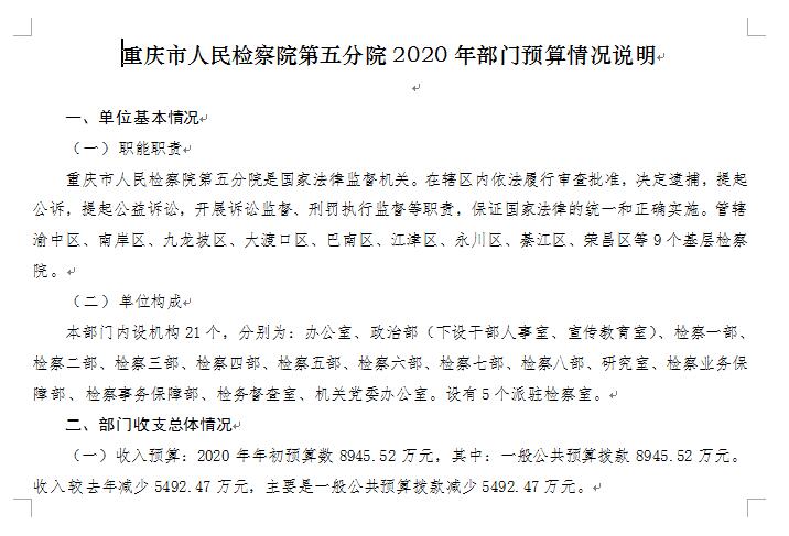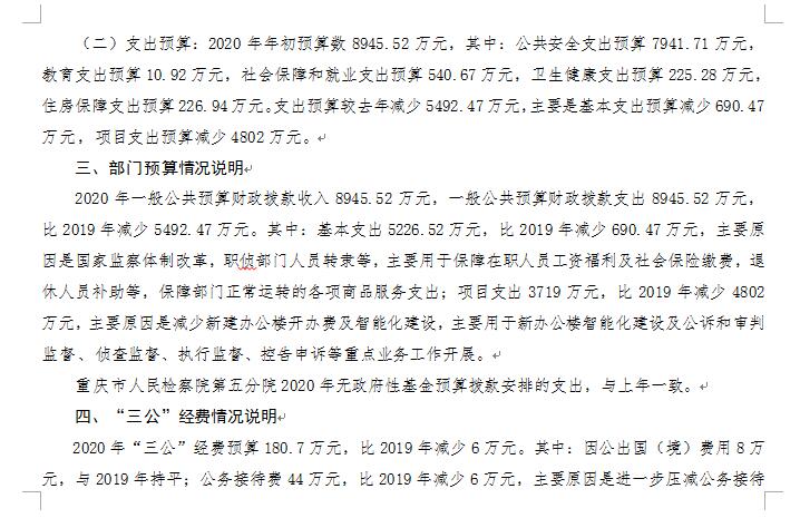 卡提诺论坛 第五分院2020年部门预算公开