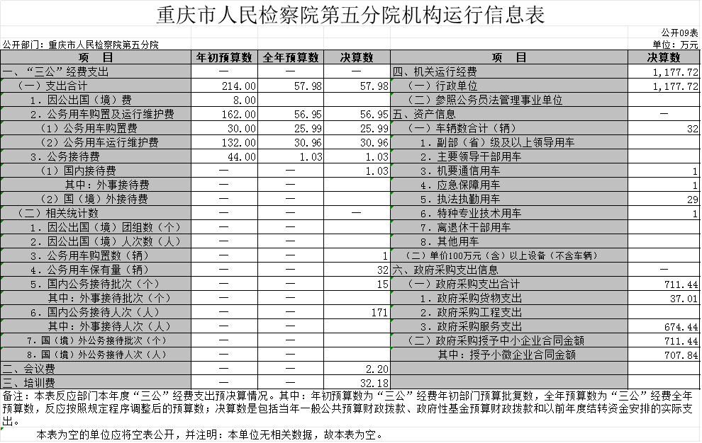 2022年度本部门机关运行经费支出1,177.72万元,主要用于开支办公及印刷费、邮电费、差旅费、会议费、福利费、日常维护费、办公用房水电费、物业管理费、公务用车运行维护费以及其他费用。机关运行经费较上年决算数增加268.08万元,增长29.5%,主要原因是本年我院搬入新办公楼,物业管理费、水电费等机关运行费用增加。