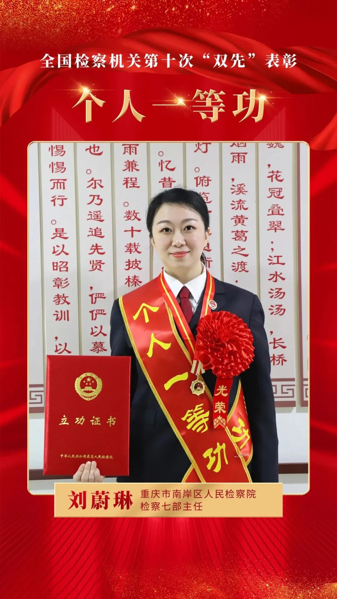 2023年12月29日,南岸区检察院检察七部主任刘蔚琳被最高人民检察院荣记“个人一等功”,她的从检履历上再添了浓墨重彩的一笔。