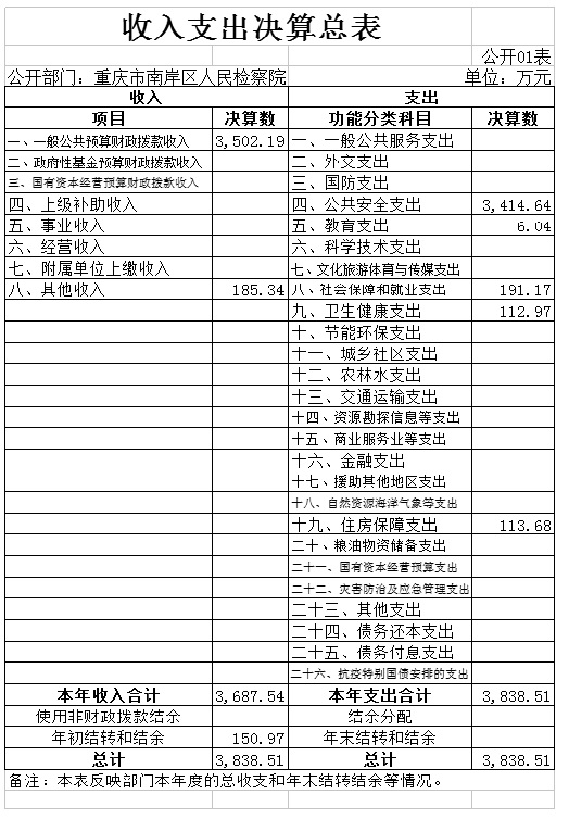 1.总体情况。2020 年度收入总计3,838.51万元,支出总计3,838.51万元。收支较上年决算数减少424.35万元、 下降9.95%,主要原因是监察改革人员工资划转等。本部分的收入总计包括收入合计、年初结转和结余,支出总计包括本年支出合计、结余分配、年末结转和结余。