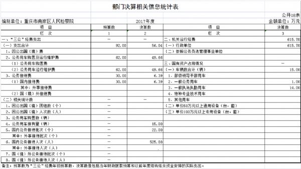 重庆市南岸区人民检察院2017年本院决算情况说明