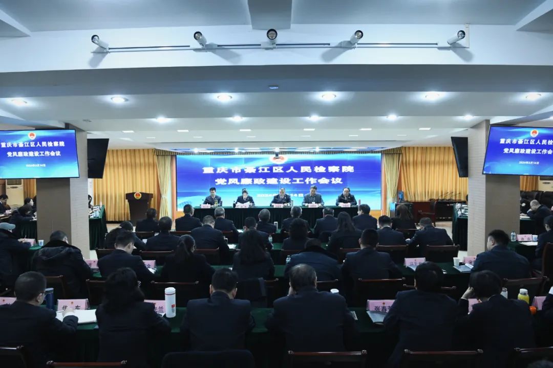 3月14日,綦江区检察院召开2024年度党风廉政建设工作会议,会议邀请区纪委监委驻区人大机关纪检监察组领导到会指导。綦江区检察院在家班子成员及全体干警参会。