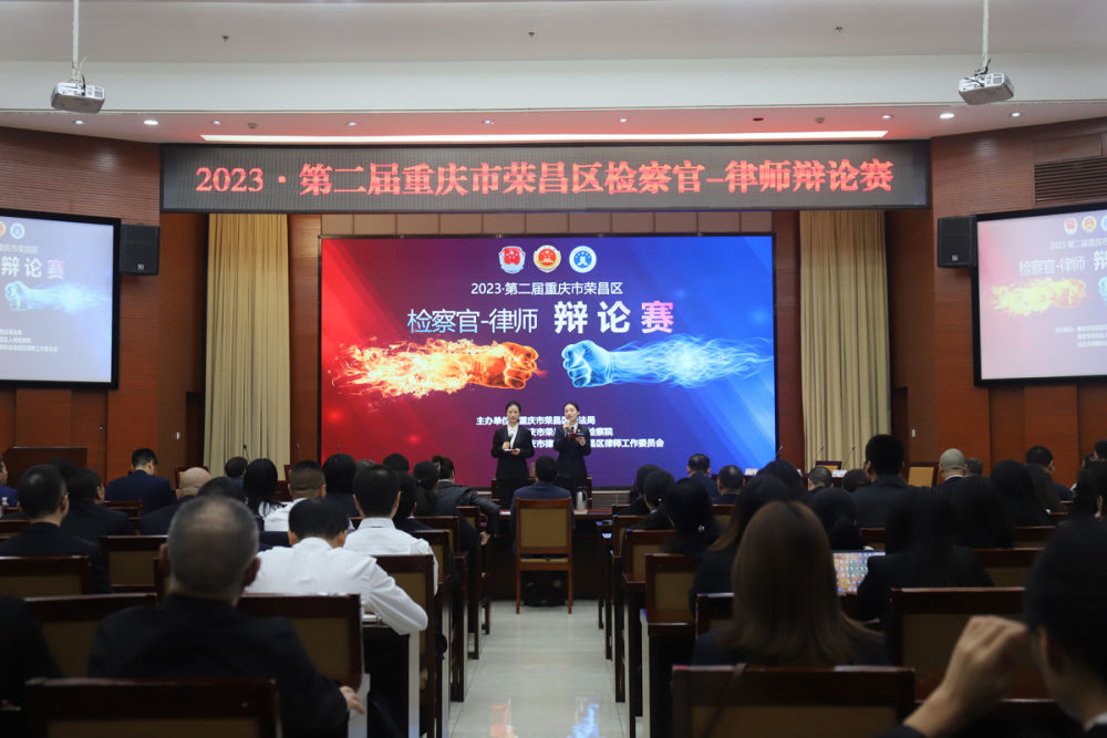 新华社客户端重庆12月8日电 “控方认为肖某的行为构成强迫交易罪!”“辩方认为肖某的行为构成敲诈勒索犯罪。”这是日前举行的第二届重庆市荣昌区检察官—律师辩论赛的对话。经过前期层层选拔,最终9名检察官与9名律师组成3支队伍,采取团体对抗模式,在决赛场上激烈角逐。来自荣昌区检察院、区司法局、区公安局等部门以及区法律服务行业的200余名观众观看比赛。