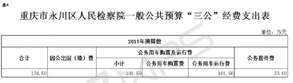 一、单位基本情况 重庆市永川区人民检察院是国家法律监督机关,内设17个职能部门。主要职能是:履行职务犯罪案件侦查、审查逮捕、审查起诉、审判活动监督、立案监督等。 二、部门预算情况说明 2017年一般公共预算财政拨款收入3388.67万元,一般公共预算财政拨款支出3388.67万元,比2016年增加541.27万元。其中:基本支出 2686.72万元,比2016年增加1162.82万元,主要原因是人员政策性增资和司法体制改革增资因素,主要用于保障在职人员工资福利及社会保险缴费、离退休人员离退休费及生活补助,保障部门正常运转的各项商品服务支出;项目支出701.95万元,比2016年减少621.55万元,主要原因是支出结构调整,主要用于查办和预防职务犯罪、公诉和审判监督、侦查监督、执行监督、控告申诉等重点工作。 2017年本单位无政府性基金收支。 三、 “三公”经费情况说明 2017年“三公”经费预算134.5万元,比2016年减少0.5万元。其中:因公出国(境)费用0万元,与上年持平;公务接待费33万元,与上年持平;公务用车运行维护费101.5万元,比2016年减少0.5万元, 减少主要原因是健全了公务用车制度,加强了日常细节管理。2016年,我单位认真贯彻落实中央关于厉行节约的各项要求,制定相关财务管理制度,严格控制“三公”经费开支。 四、其他重要事项的情况说明 1、部门运行经费情况。2017年一般公共预算财政拨款运行经费613.64万元,主要用于办公费、印刷费、邮电费、差旅费及其他商品和服务支出等。 2、政府采购情况。2017年政府采购预算总额50万元,其中:政府采购货物预算50万元。 3、绩效目标设置情况。2017年项目支出实行了绩效目标管理,涉及一般公共预算财政拨款701.95万元。