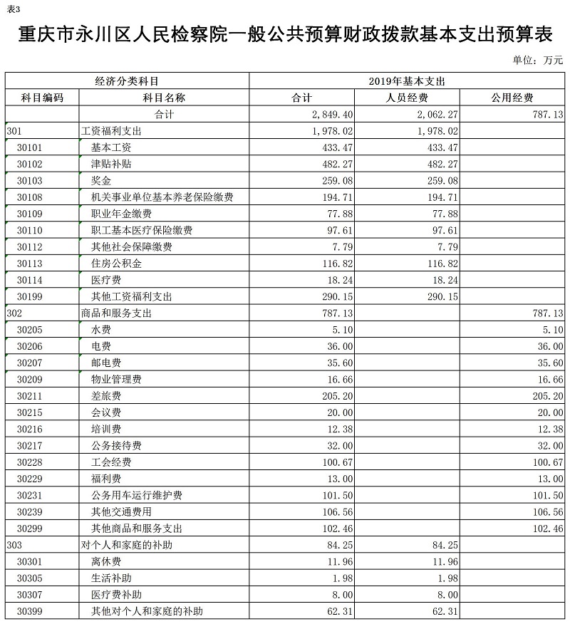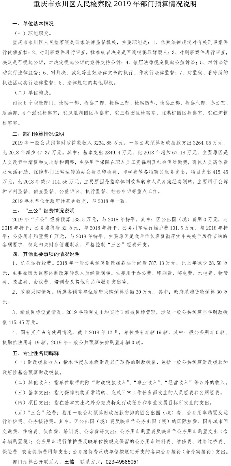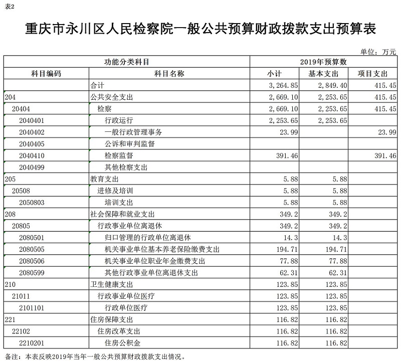 重庆市永川区人民检察院2019部门预算情况说明