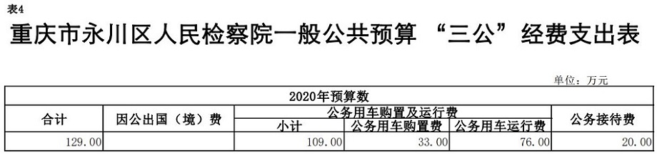 2020年“三公”经费预算129万元,比2019年减少4.5万元。其中:因公出国(境)费用0万元,与2019年持平;公务接待费20万元,比2019年减少12万元,主要原因是我单位认真贯彻落实中央关于厉行节约的各项要求,制定相关财务管理制度,严格控制“三公”经费开支;公务用车运行维护费76万元,比2019年减少25.5万元,主要原因是我院认真贯彻落实中央“八项规定”精神和厉行节约要求,严格落实公车使用规定,严禁公车私用,公车运行维护成本有所下降;公务用车购置费33万元,比2019年增加33万元,主要原因是2020年需要增加3辆执法执勤车。
