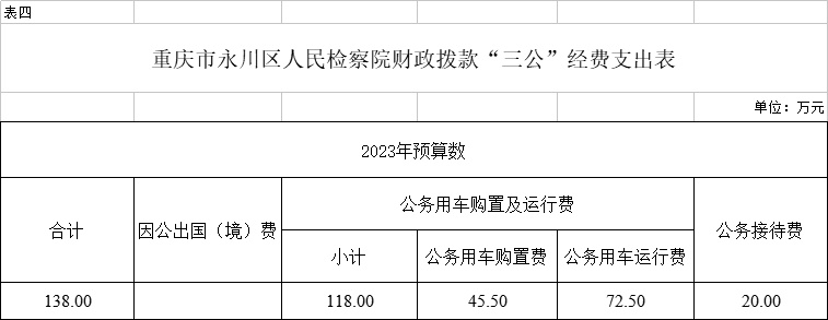 (五)“三公”经费:指用一般公共预算财政拨款安排的因公出国(境)费、公务用车购置及运行维护费、公务接待费。其中,因公出国(境)费反映单位公务出国(境)的国际旅费、国外城市间交通费、住宿费、伙食费、培训费、公杂费等支出;公务用车购置费反映单位公务用车购置支出(含车辆购置税);公务用车运行维护费反映单位按规定保留的公务用车燃料费、维修费、过路过桥费、保险费、安全奖励费用等支出;公务接待费反映单位按规定开支的各类公务接待(含外宾接待)支出。