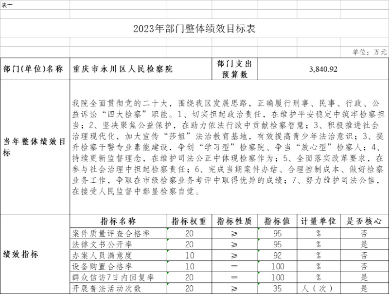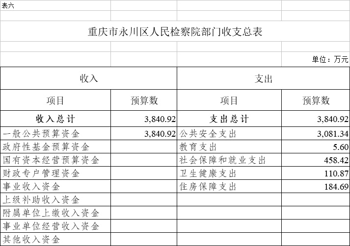2023年一般公共预算财政拨款收入3840.92万元,一般公共预算财政拨款支出3840.92万元,比2022年增加263.03万元。其中:基本支出3282.92万元,比2022年增加754.83万元,主要原因一是聘用制书记员项目经费转入人员经费170万元,二是行政参公单位公用经费综合定额人均减少1万元,预算减少96万元,三是规范公务员津贴补贴改革后,公务员基础绩效奖和年度考核奖纳入年初预算编制,养老保险、职业年金和住房公积金计提基数调整,年终一次性奖金、未休假补贴规范编制等,共计增加655万元,主要用于保障在职人员工资福利及社会保险缴费、离休人员离休费、退休人员补助等,保障部门正常运转的各项商品服务支出;项目支出558万元,比2022年减少491.8万元,主要原因一是聘用制书记员项目经费转入人员经费170万元,二是一次性项目减少345万元,主要用于公诉和审判监督、公益诉讼、执行监督、控告申诉等重点工作。