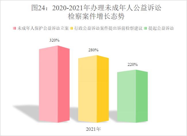 (1)立案情况。2021年,检察机关就未成年人保护公益诉讼共立案6633件,同比上升3.2倍。