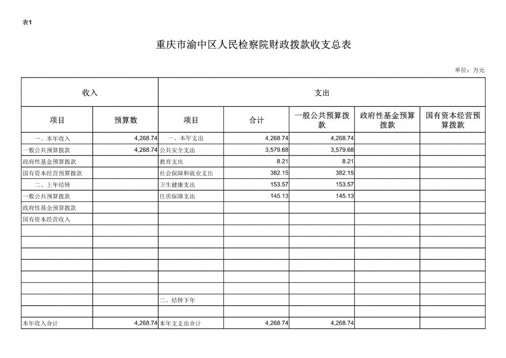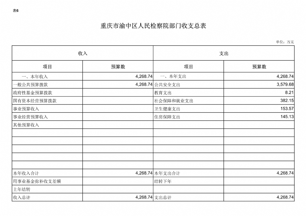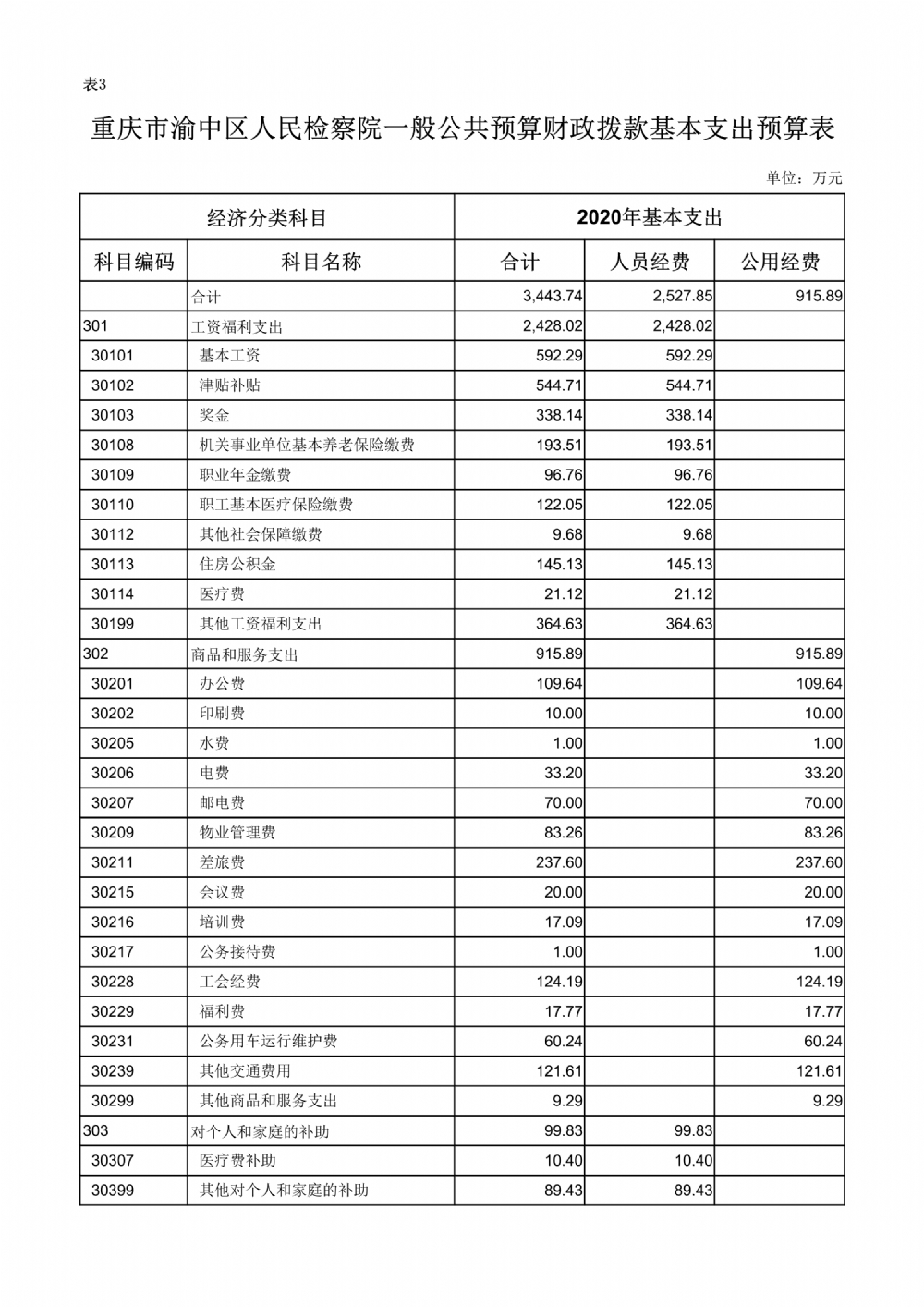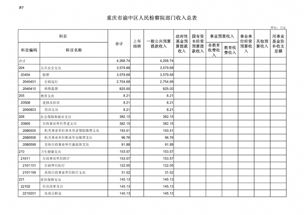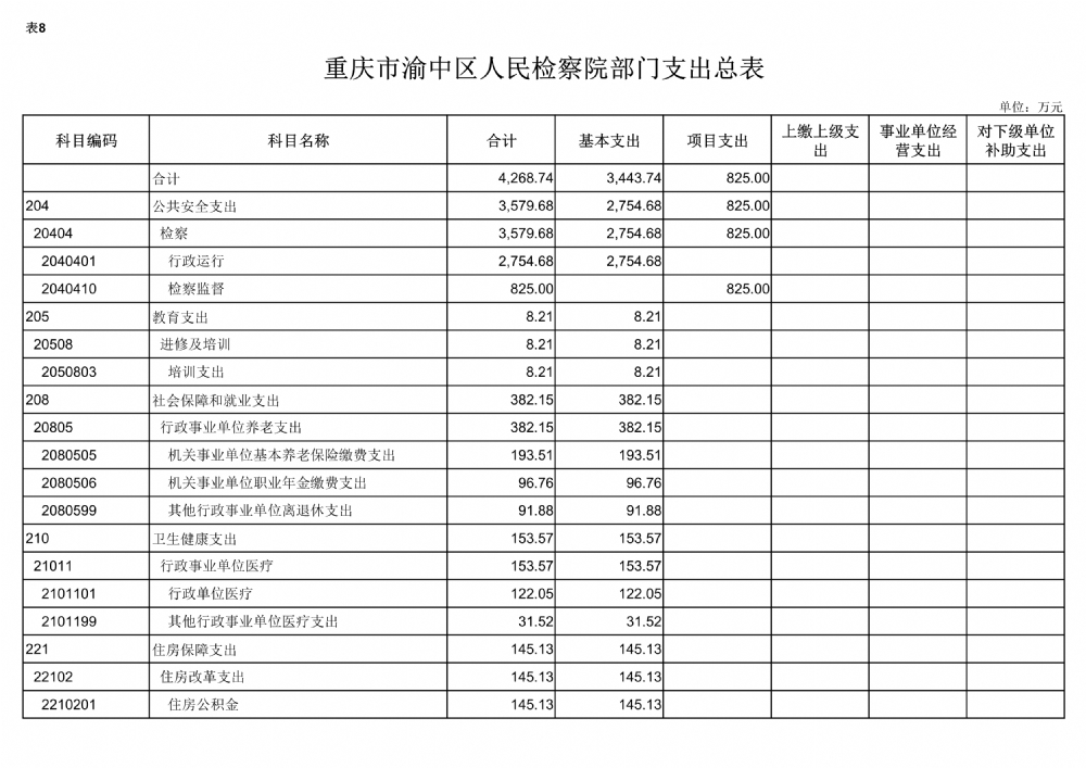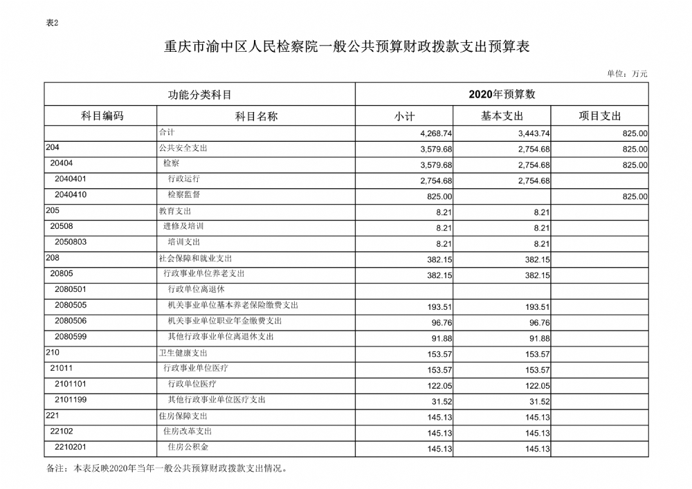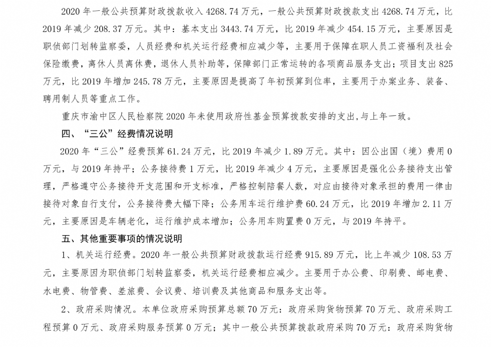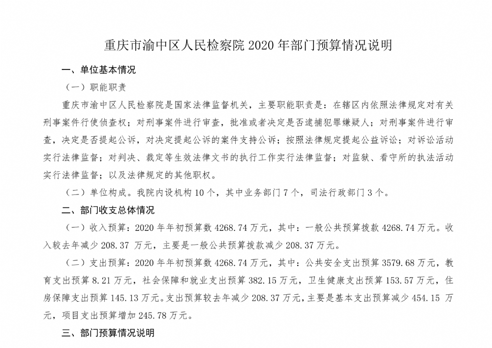 重庆市渝中区人民检察院2020年部门预算情况说明