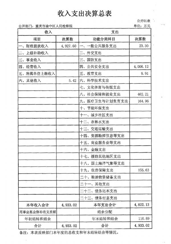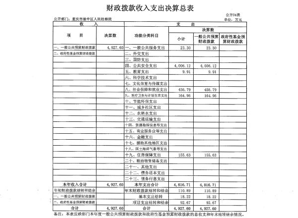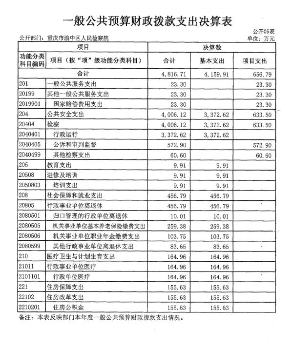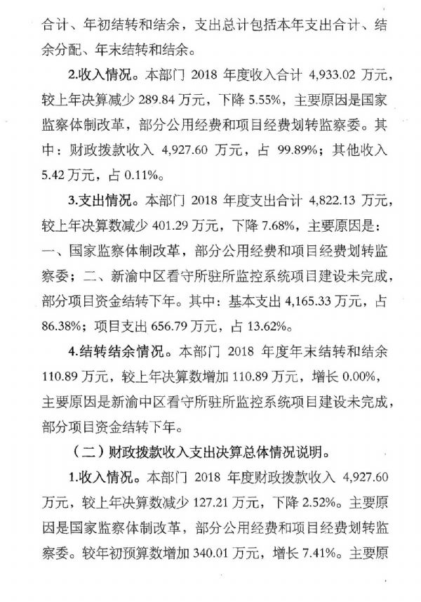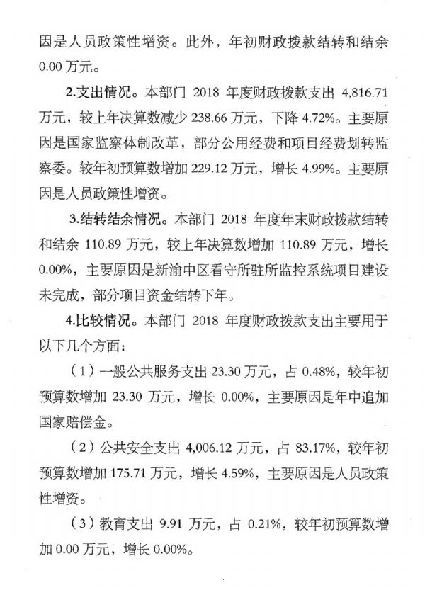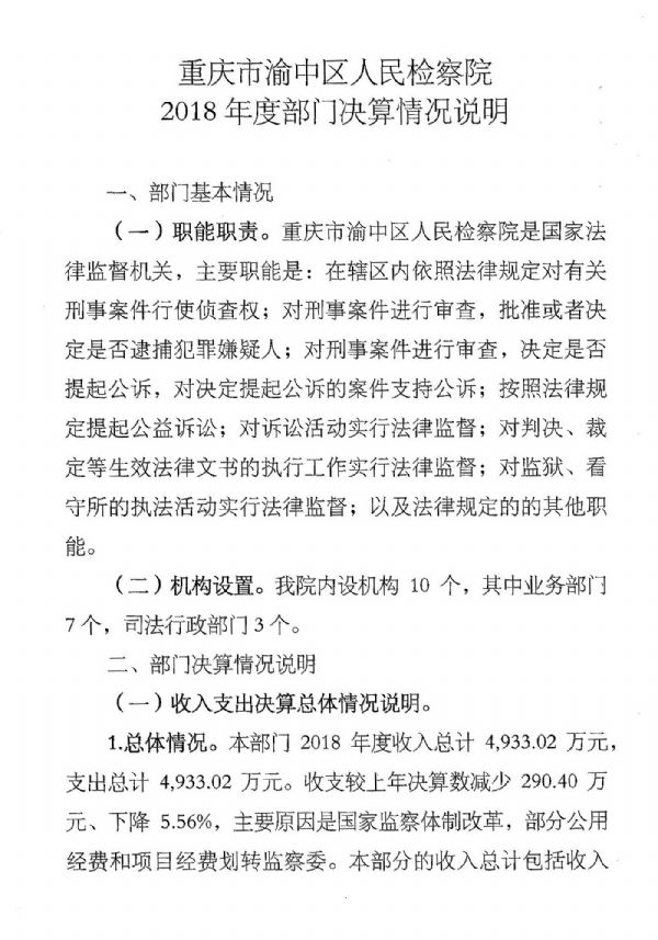 重庆市渝中区人民检察院2018年部门决算情况说明