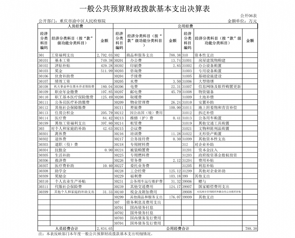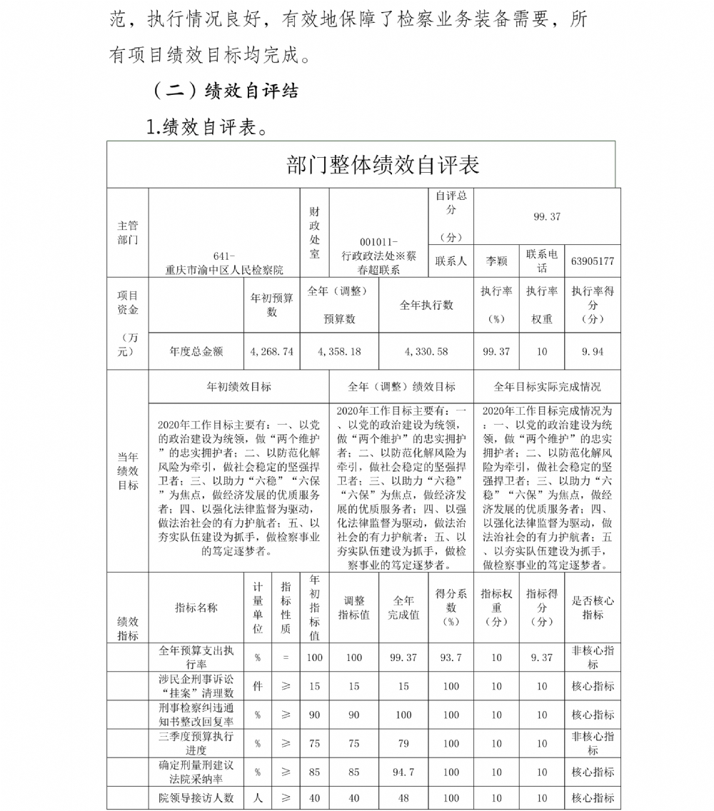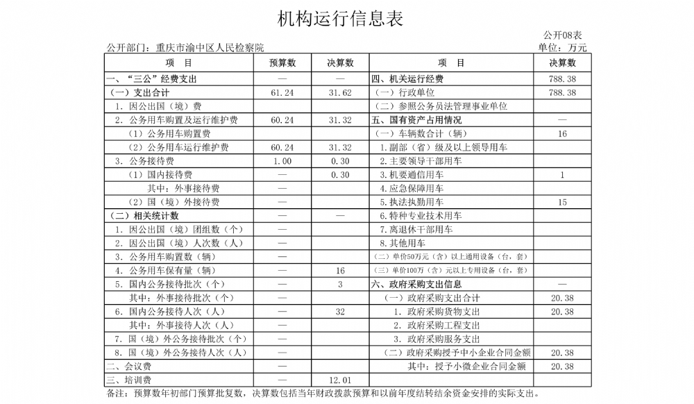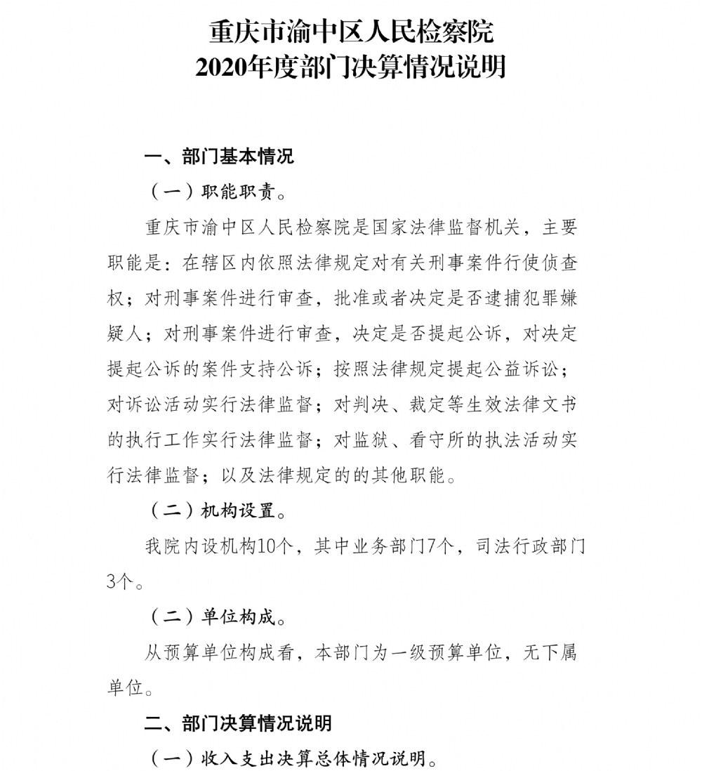 重庆市渝中区人民检察院2020年部门决算情况说明