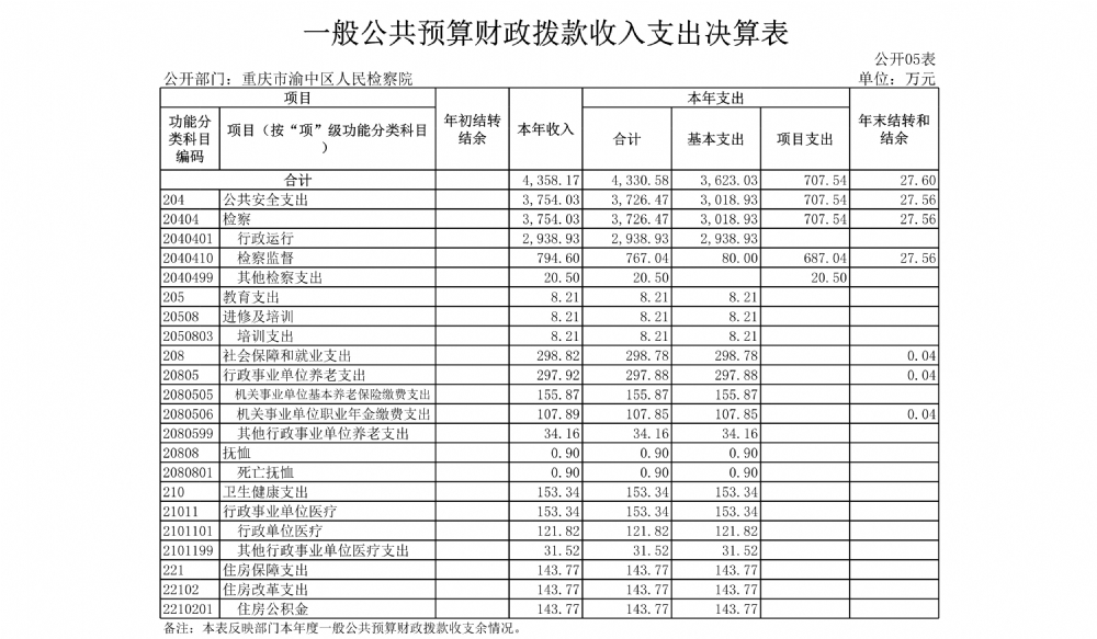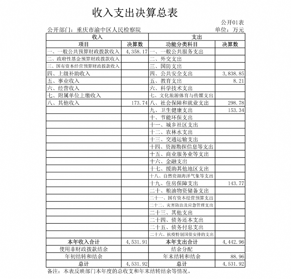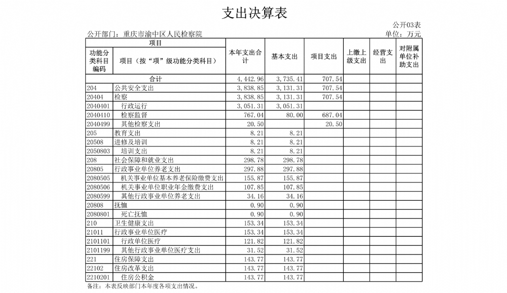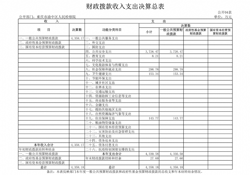 重庆市渝中区人民检察院2020年部门决算情况说明