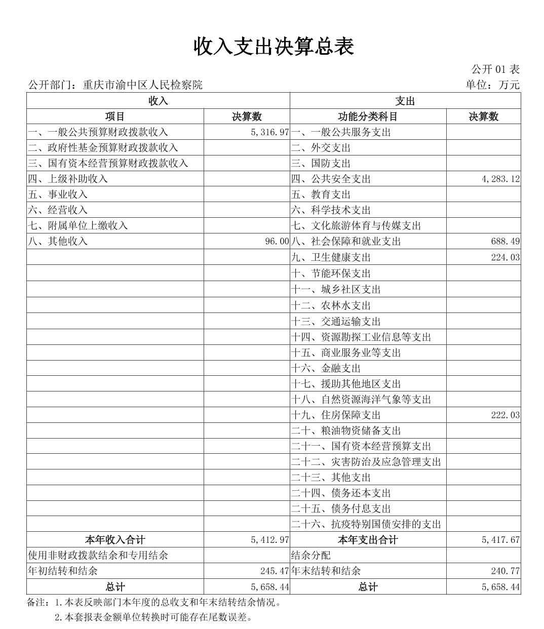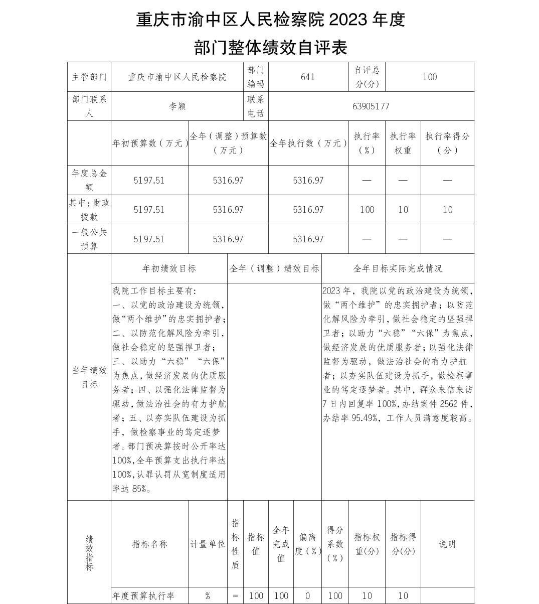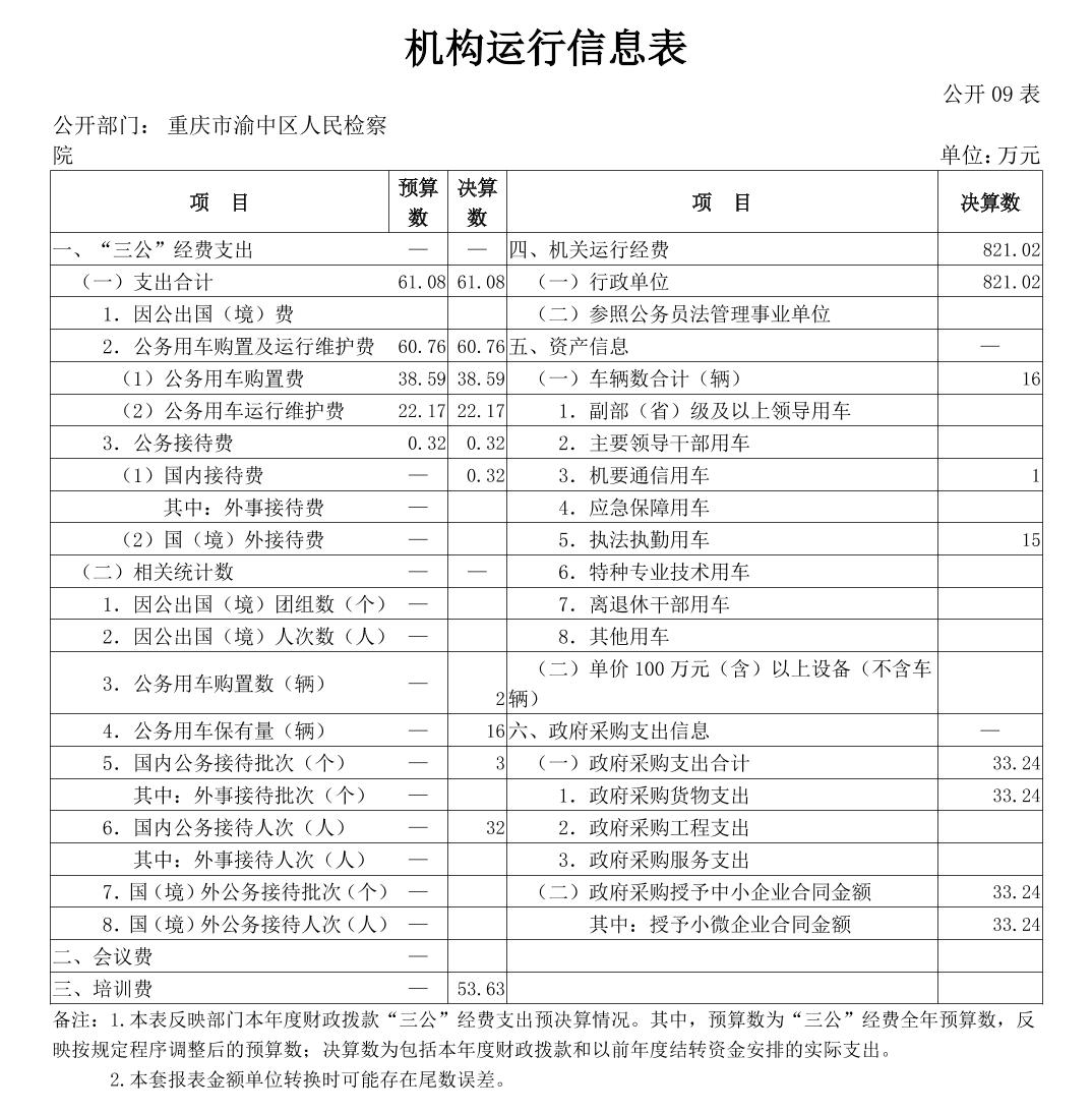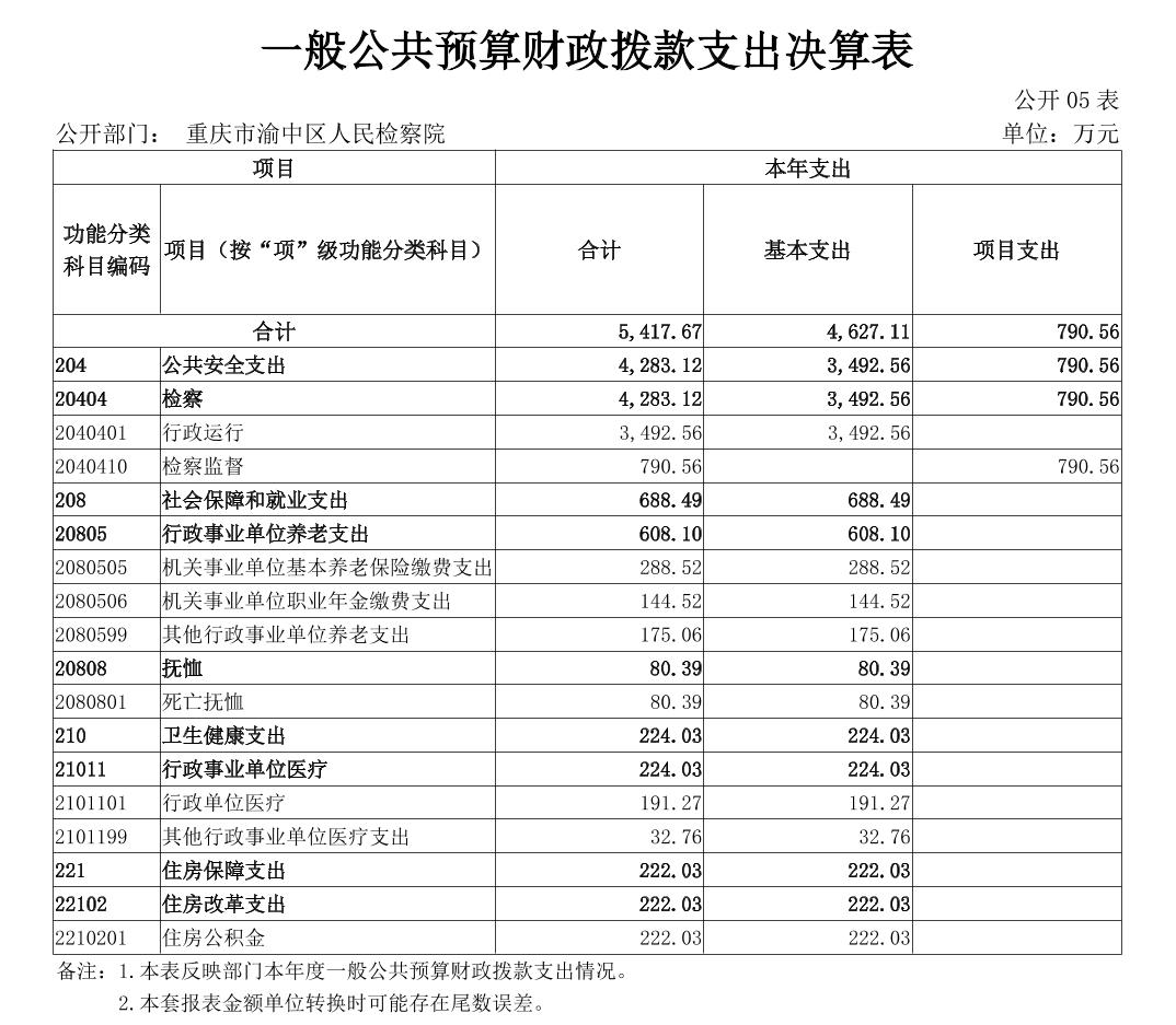 重庆市渝中区人民检察院2023年部门决算公开