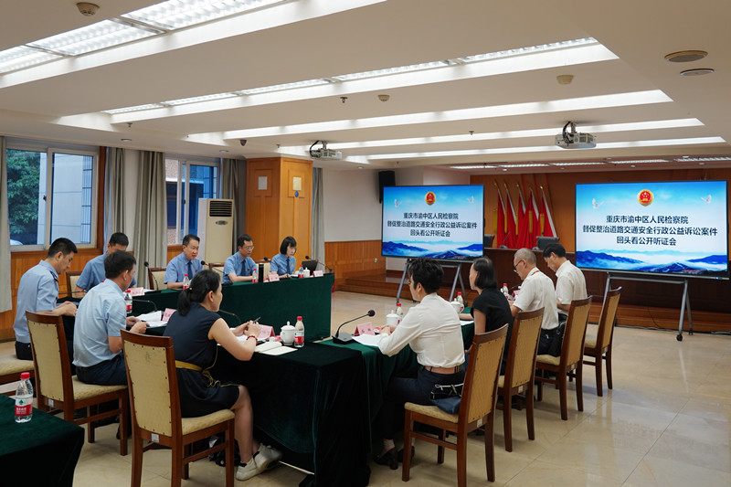近日,渝中区检察院组织召开督促整治道路交通安全行政公益诉讼案件回头看公开听证会。听证会由党组书记、检察长钟晓云主持,邀请市人大代表、人民监督员担任听证员,有关部门负责人参会。