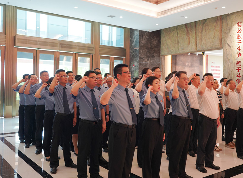 在展览序厅,大家认真聆听《习近平总书记的告诫》,庄严重温入党誓词。
