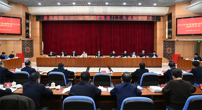 1月11日,最高人民检察院召开2023年度党建暨部门工作述职评议会。