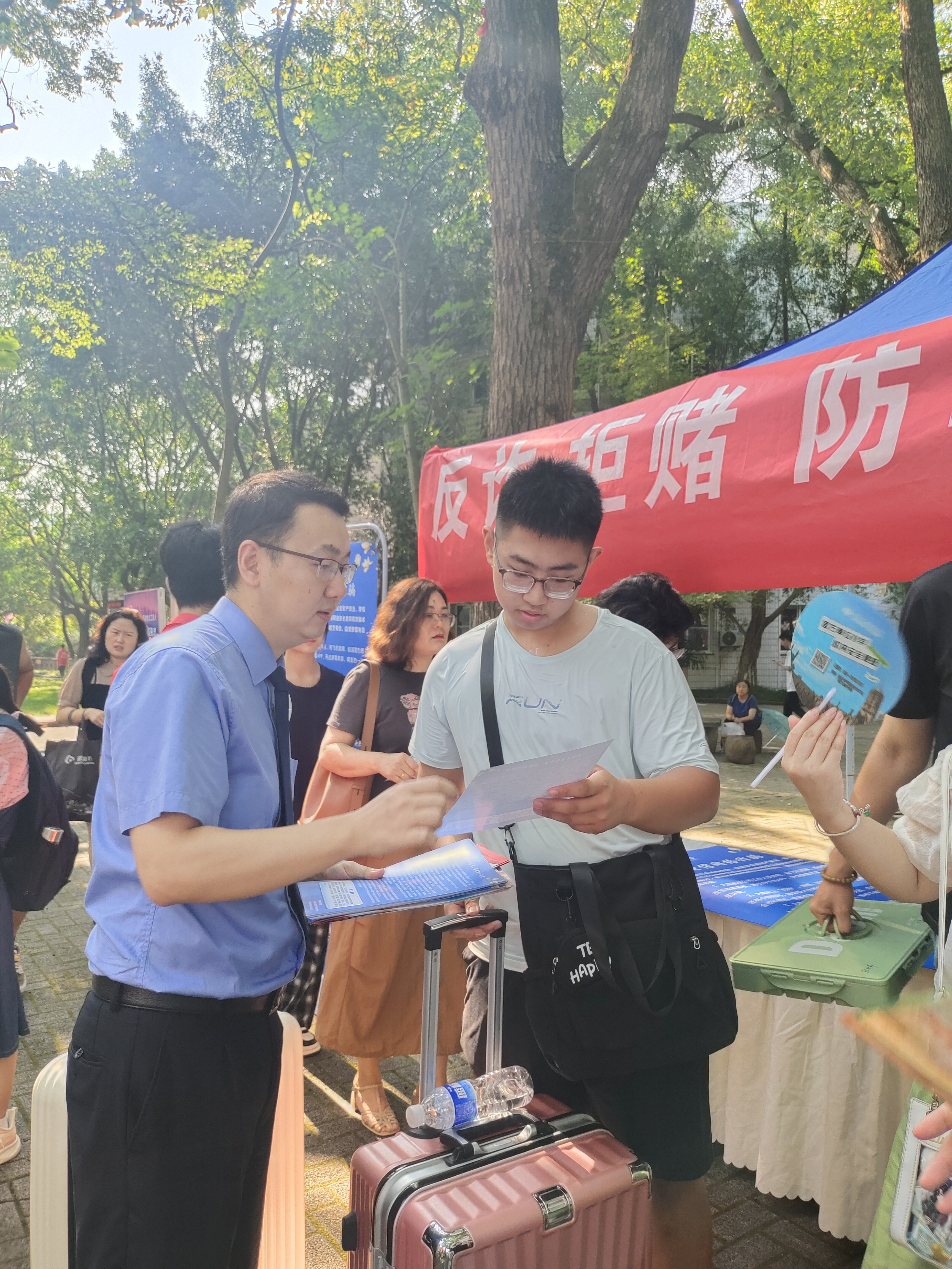 9月7日上午,西南大学迎来新一届大学生,为帮助大学新生树立反诈意识,增强反诈本领,北碚区检察院联合区公安分局、区法院等单位共同开展反诈宣传活动,现场向大学生发放宣传手册,讲解常见诈骗陷阱。