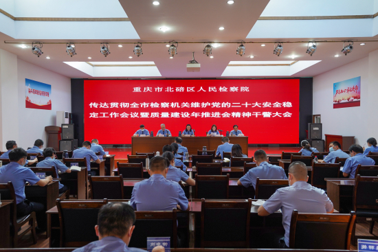 8月12日,北碚区检察院召开全院干警大会,传达学习贯彻全市检察机关维护党的二十大安全稳定工作会议暨“质量建设年”工作推进会精神。该院党组成员、副检察长郑富钰主持会议,院领导班子成员、检委会专职委员、全院干警参加会议。
