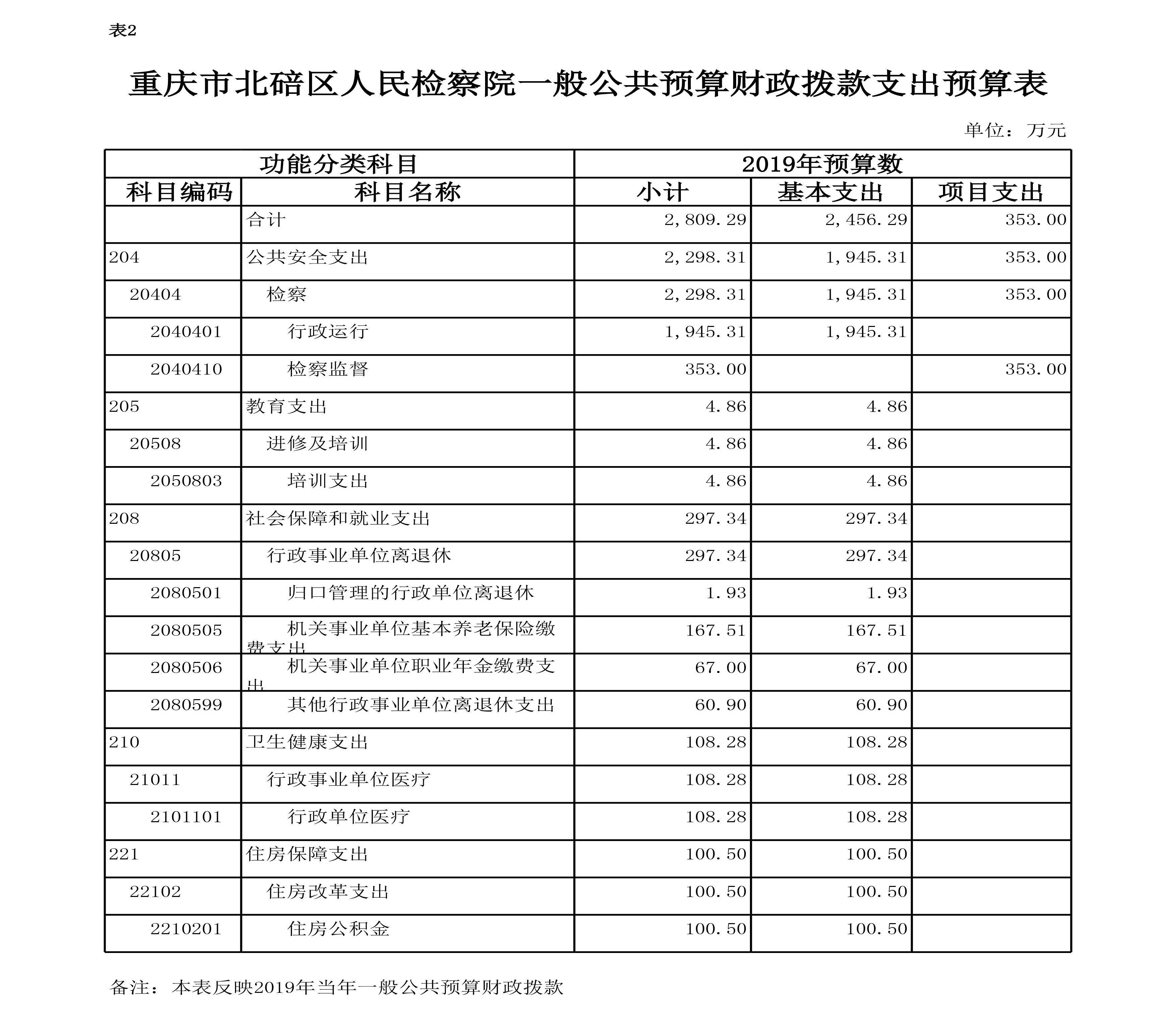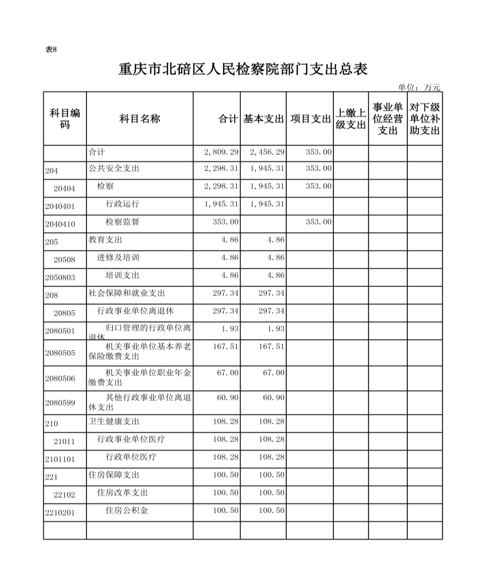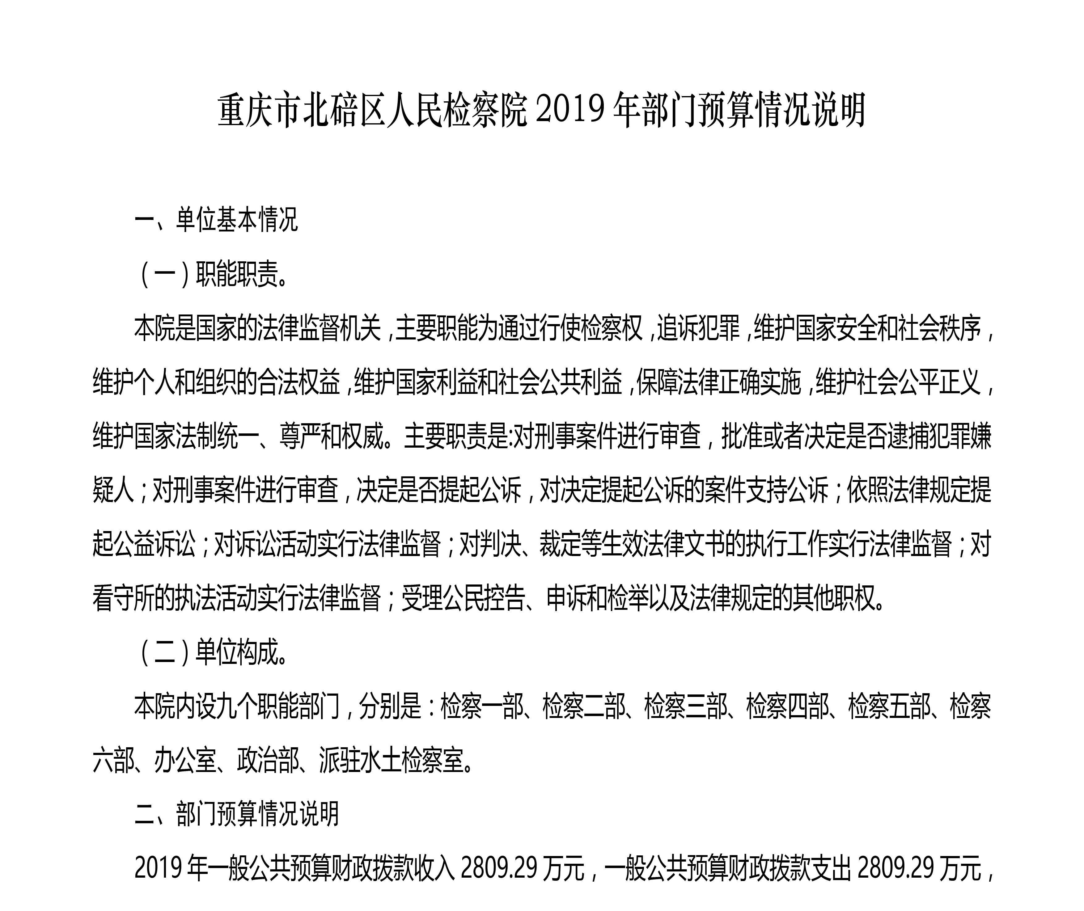 重庆市北碚区人民检察院2019年度部门预算公开
