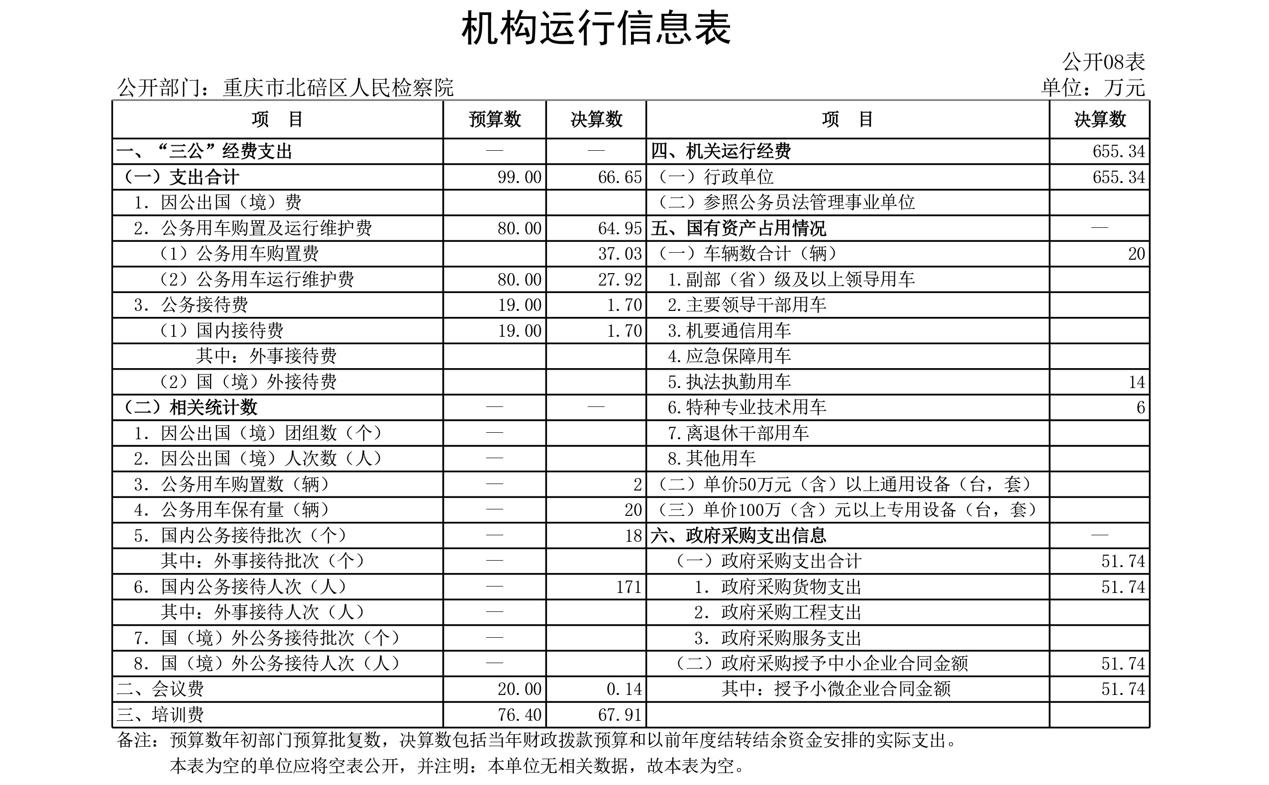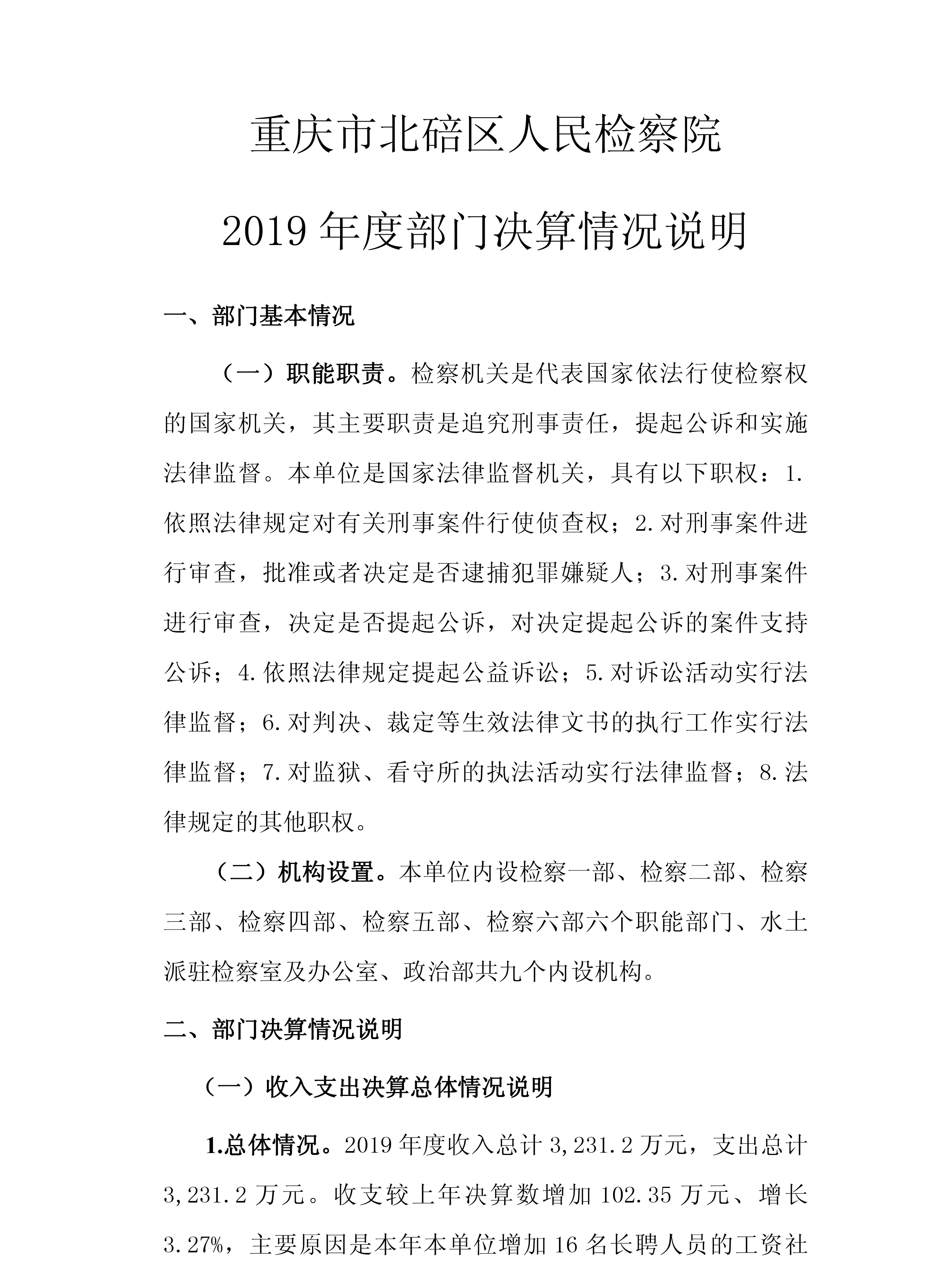 重庆市北碚区人民检察院2019年度部门决算公开