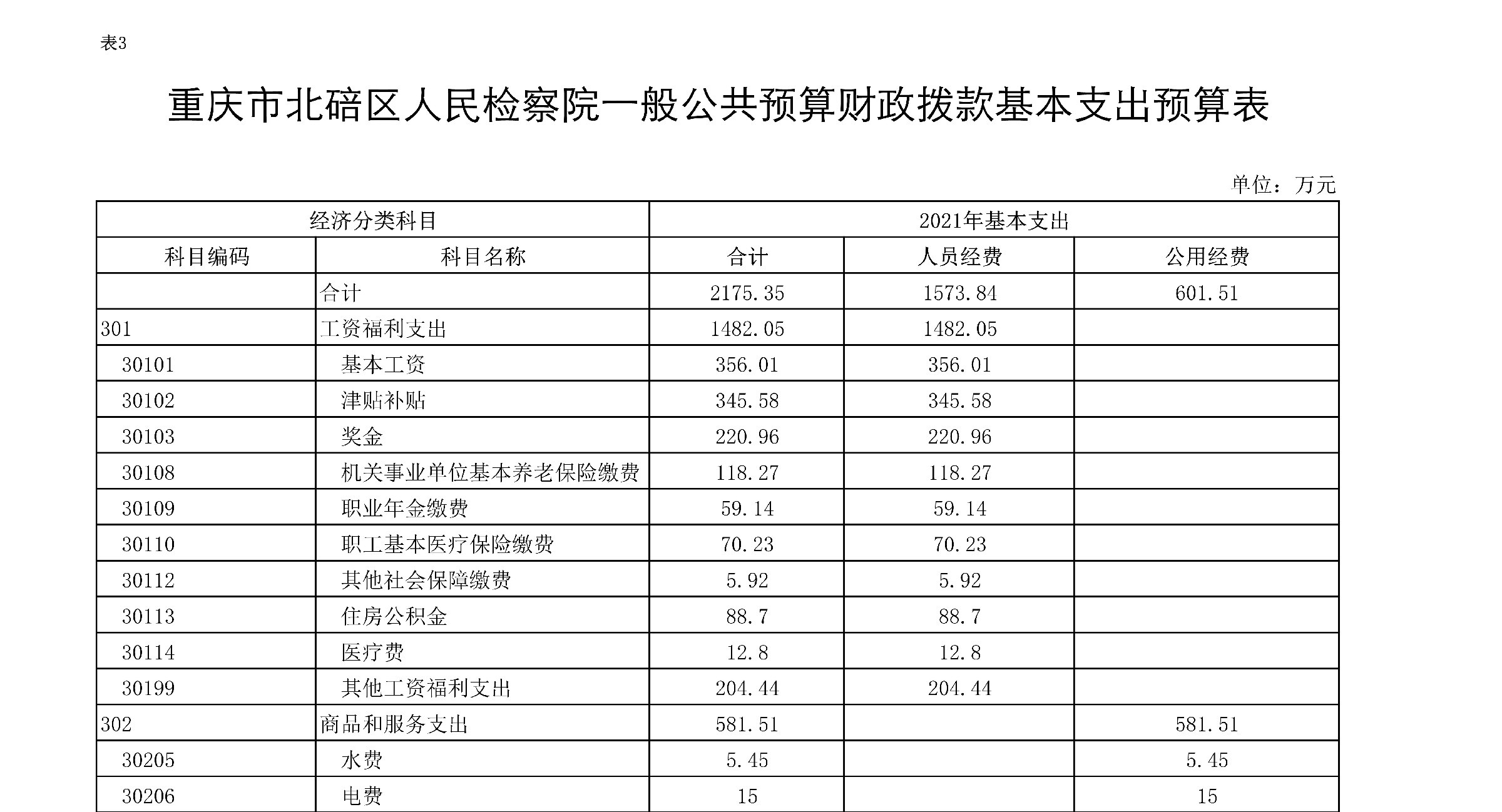 重庆市北碚区人民检察院2021年度部门预算公开