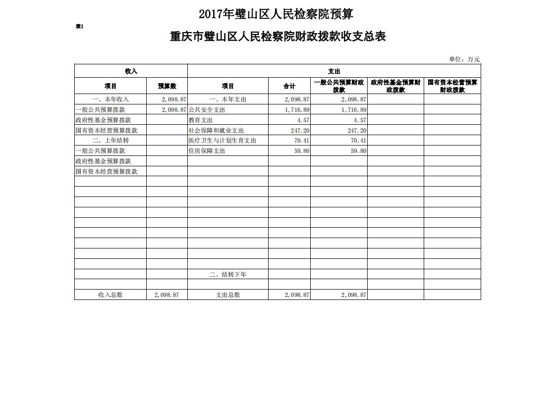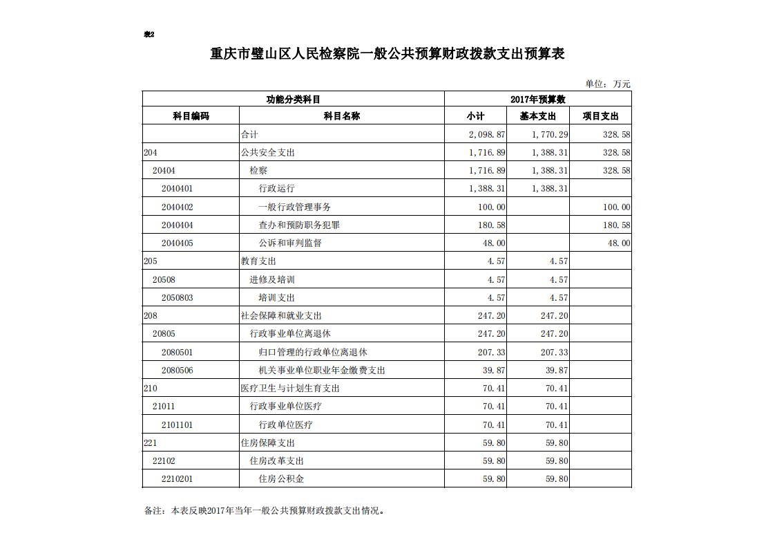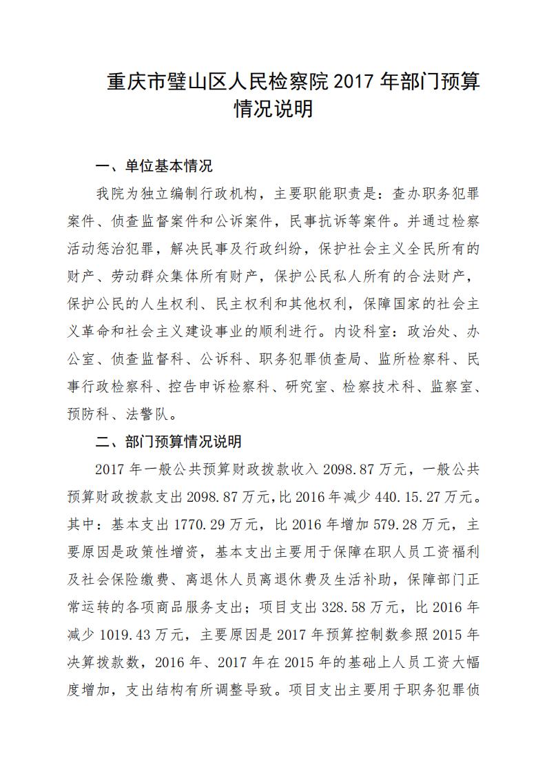 2017年重庆市璧山区人民检察院预算公开
