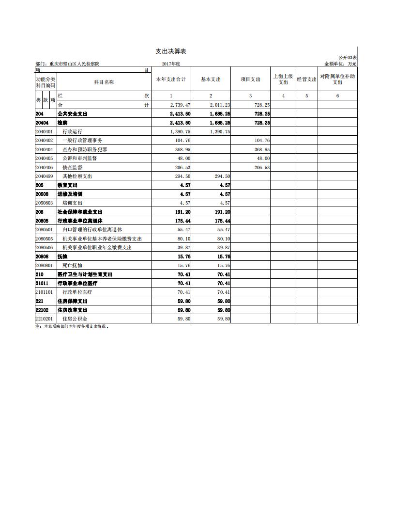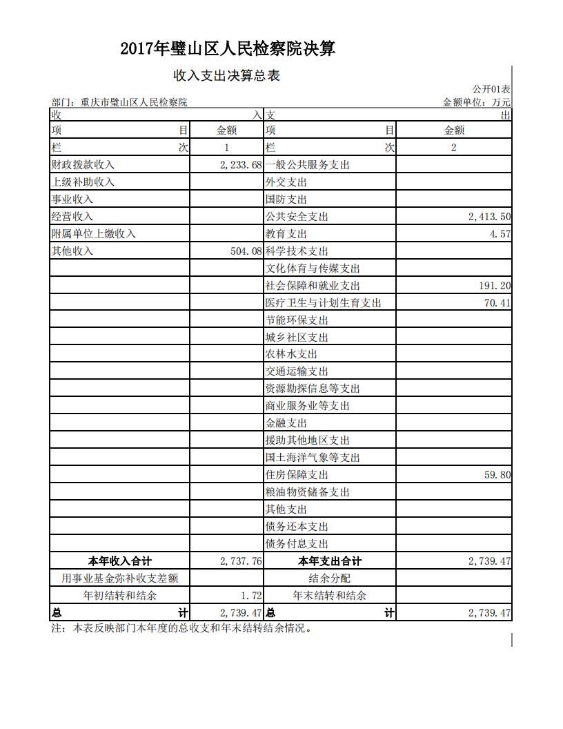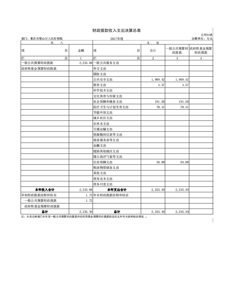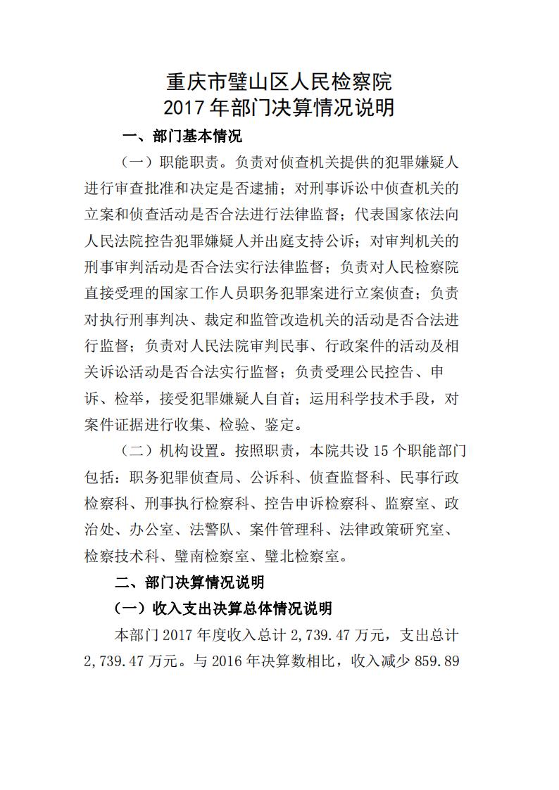 2017年重庆市璧山区人民检察院决算公开