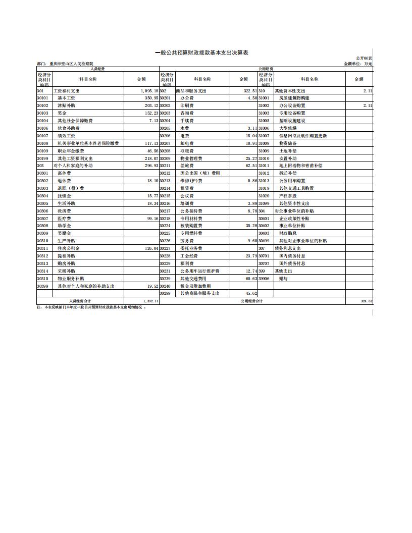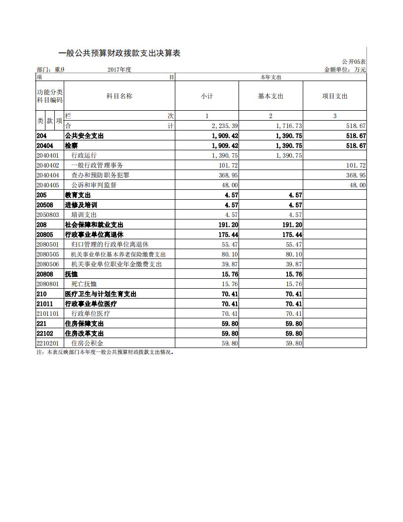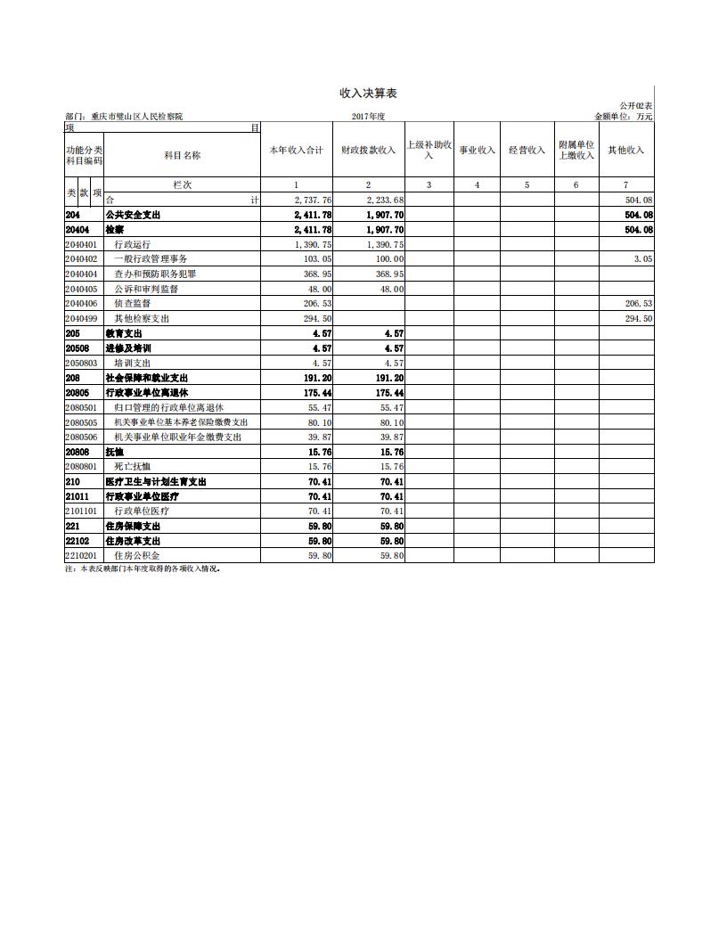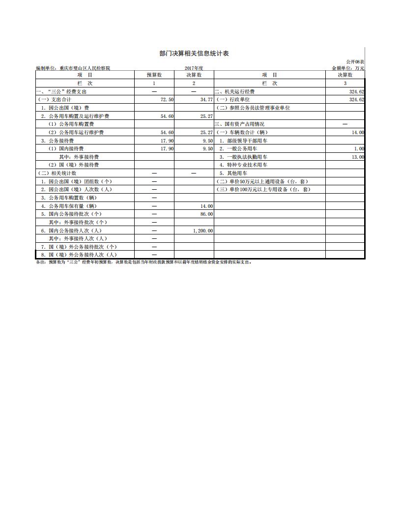2017年重庆市璧山区人民检察院决算公开