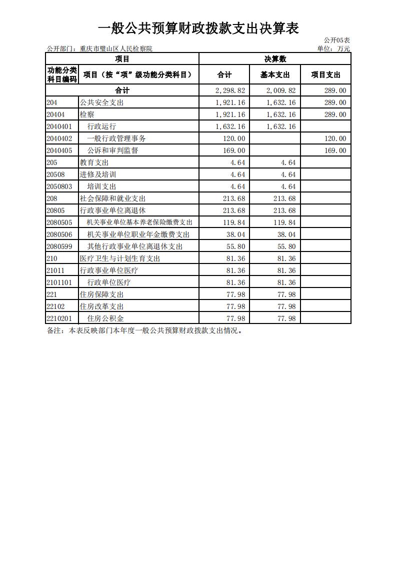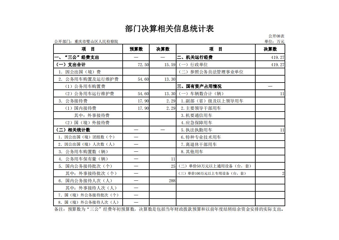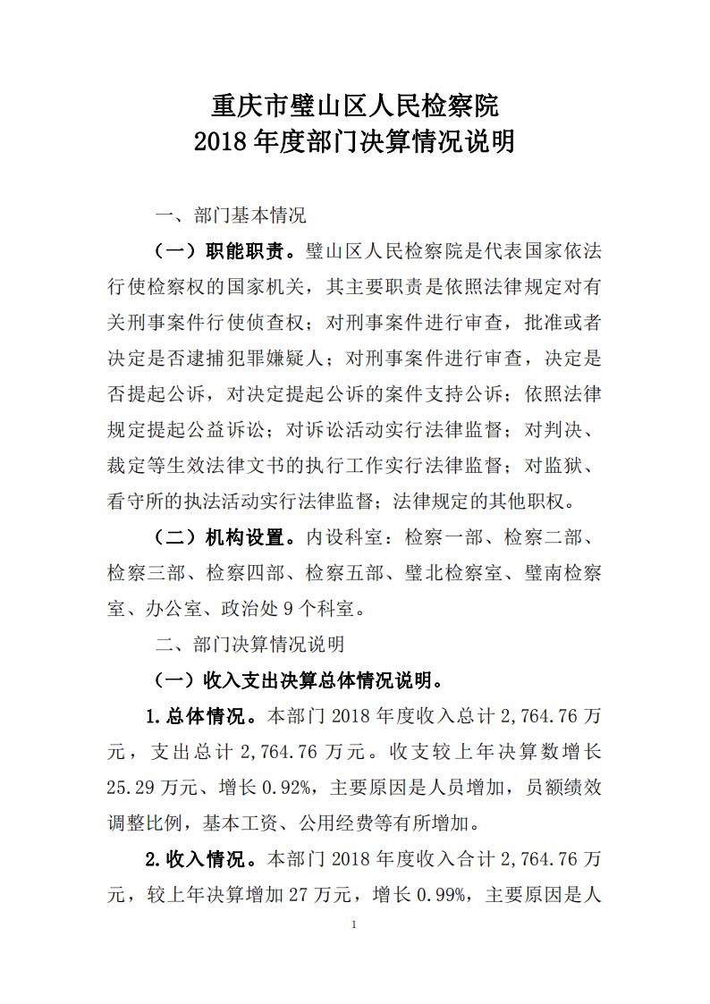 2018年重庆市璧山区人民检察院决算公开