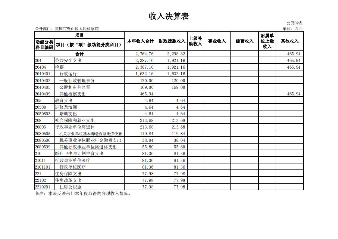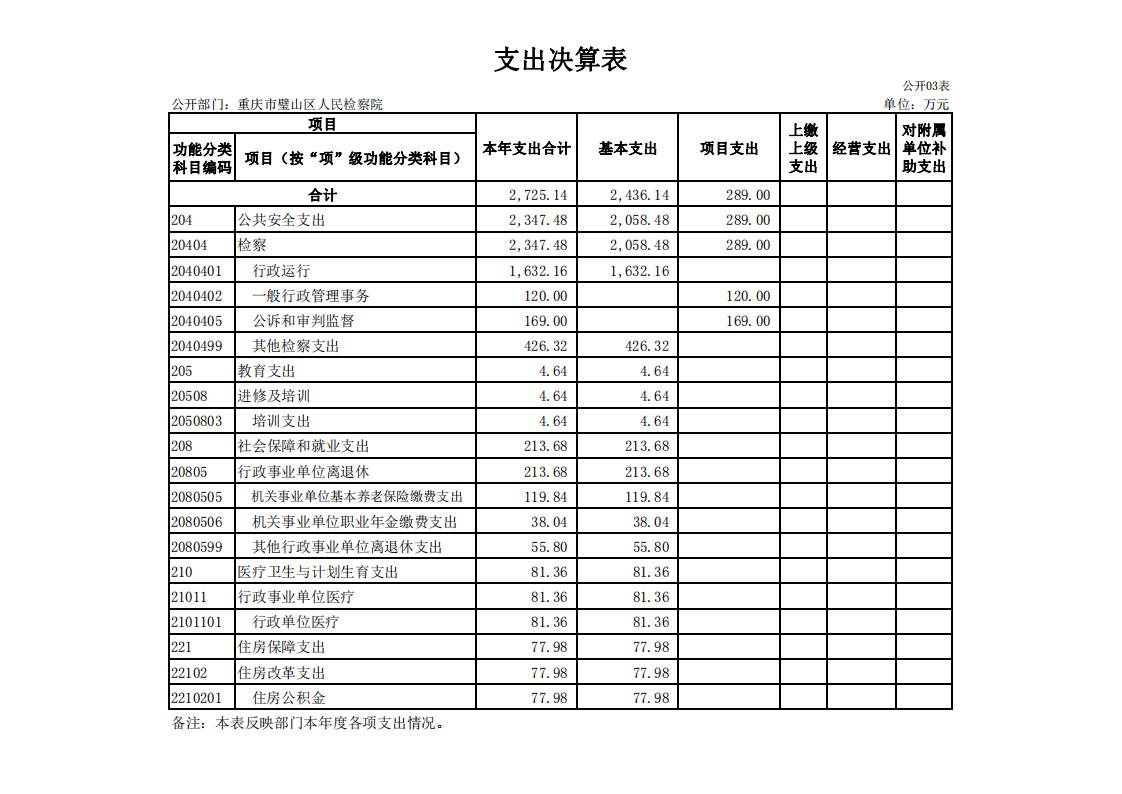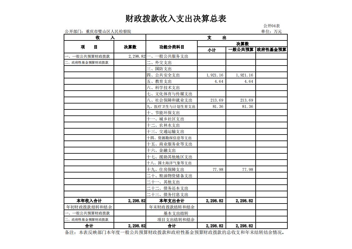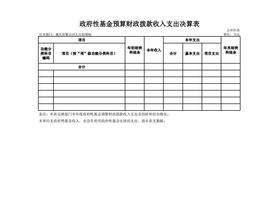 2018年重庆市璧山区人民检察院决算公开