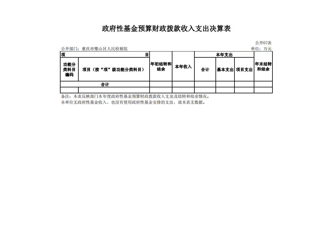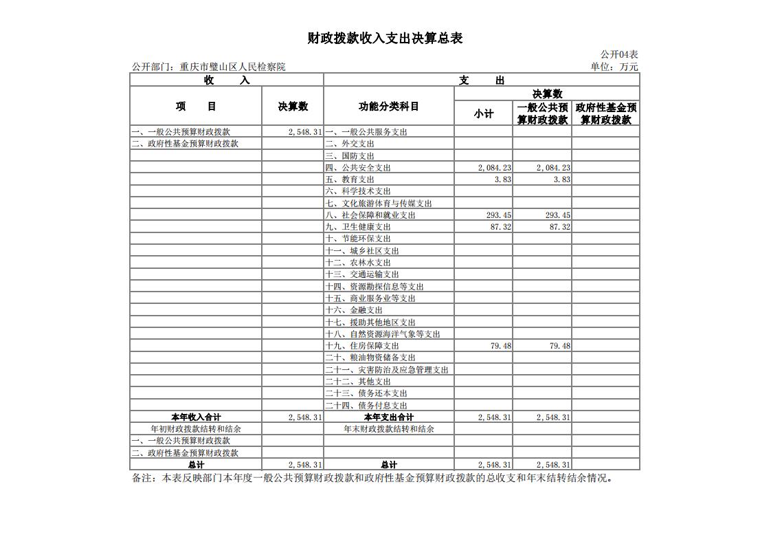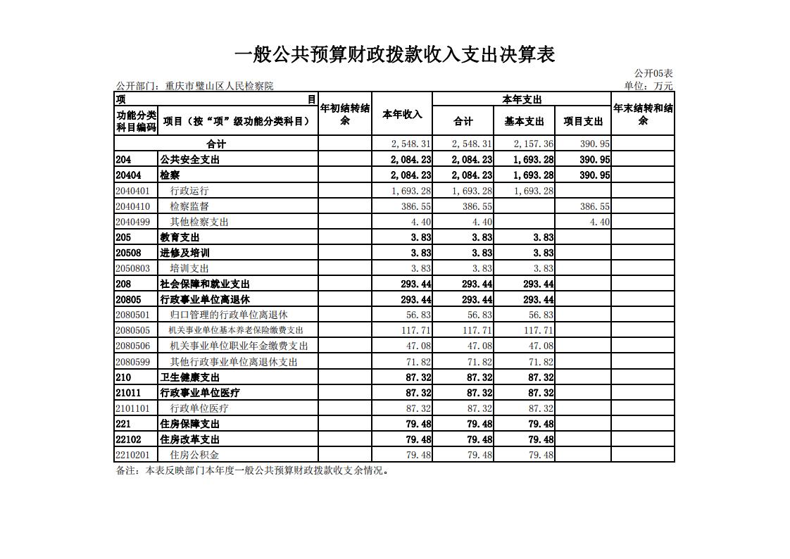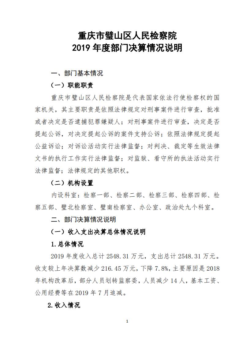 2019年重庆市璧山区人民检察院决算公开