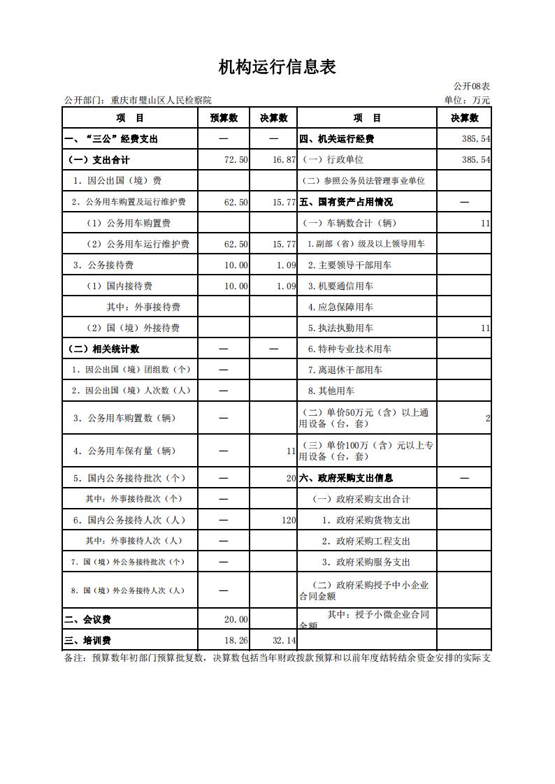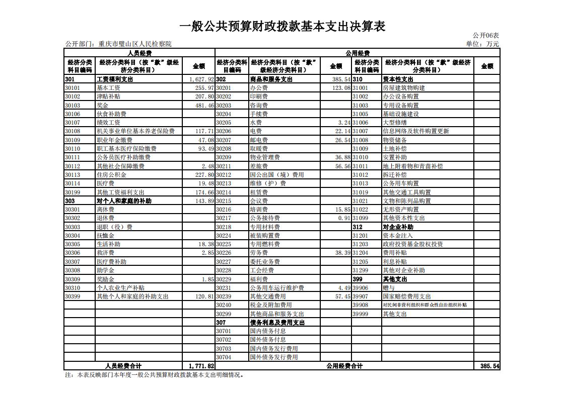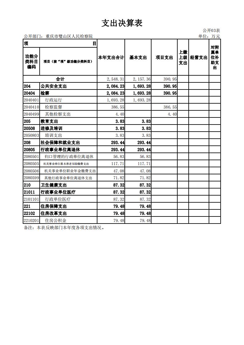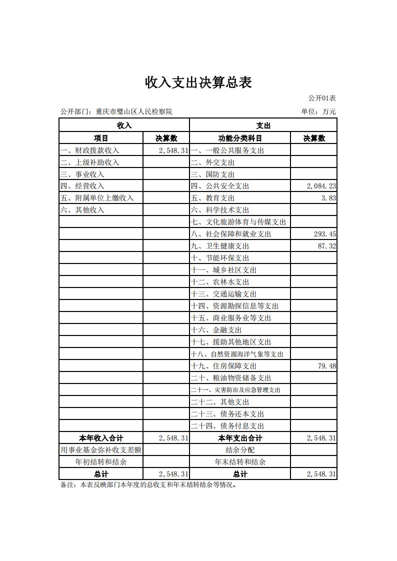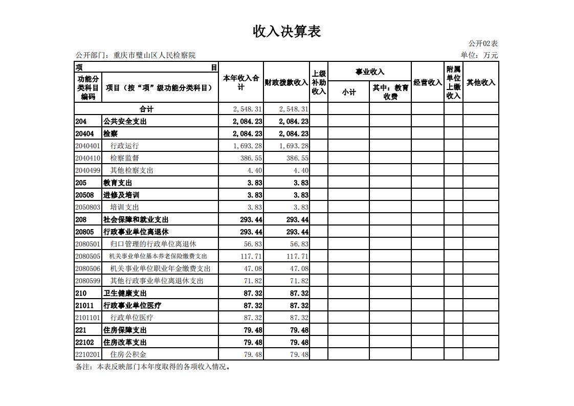 2019年重庆市璧山区人民检察院决算公开