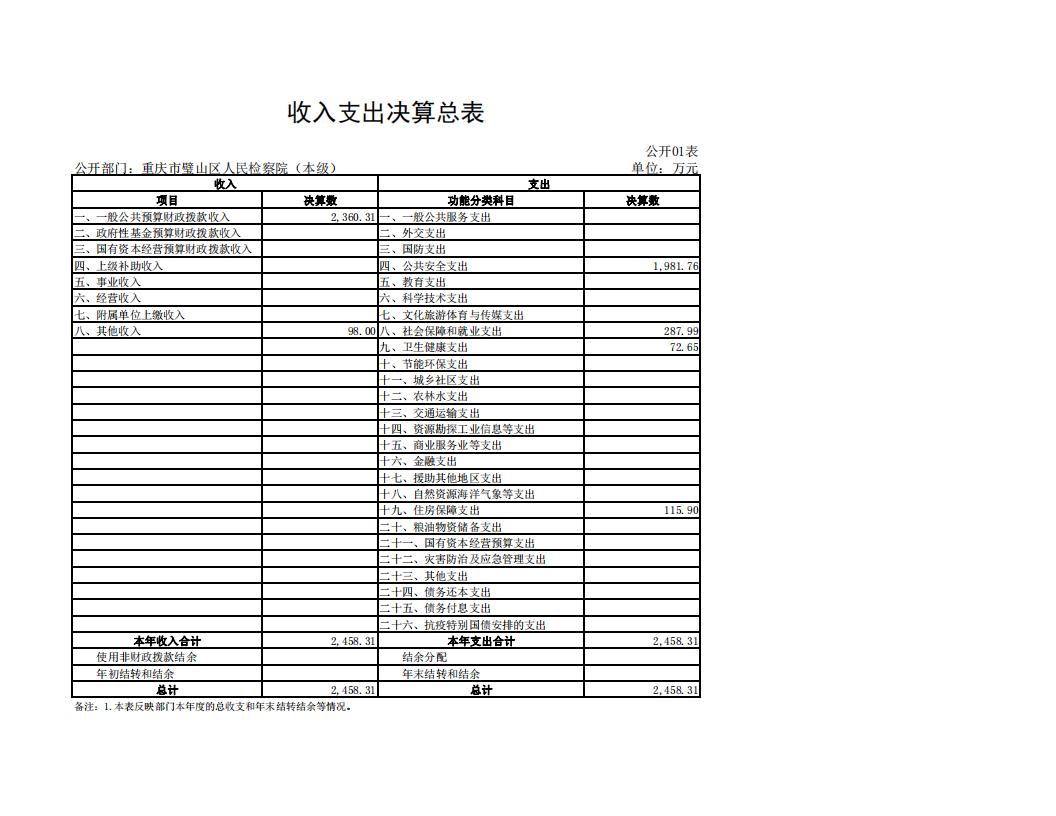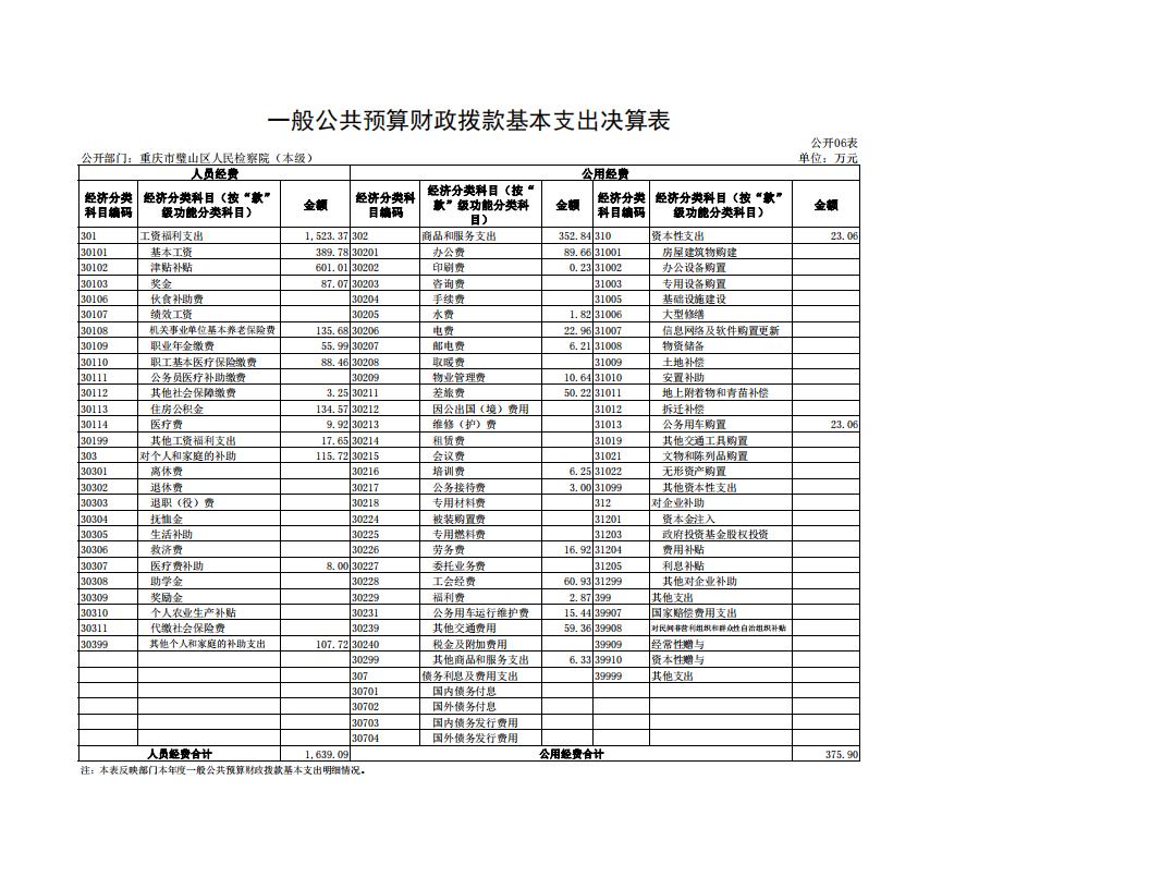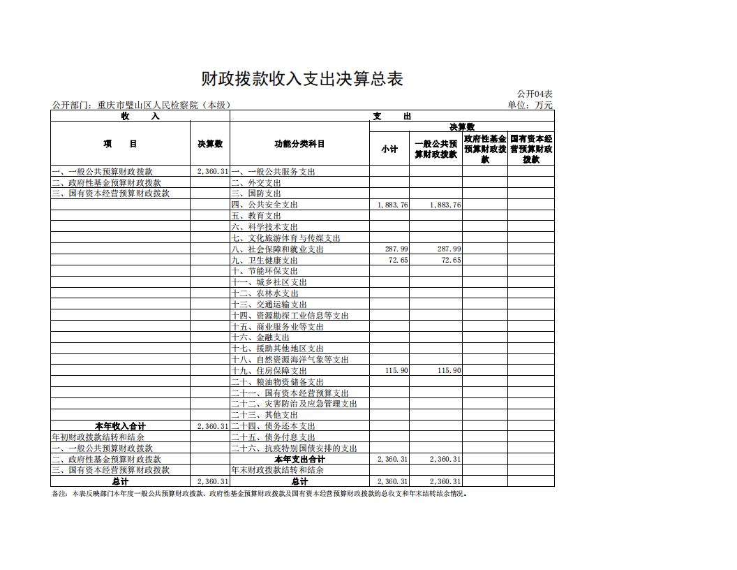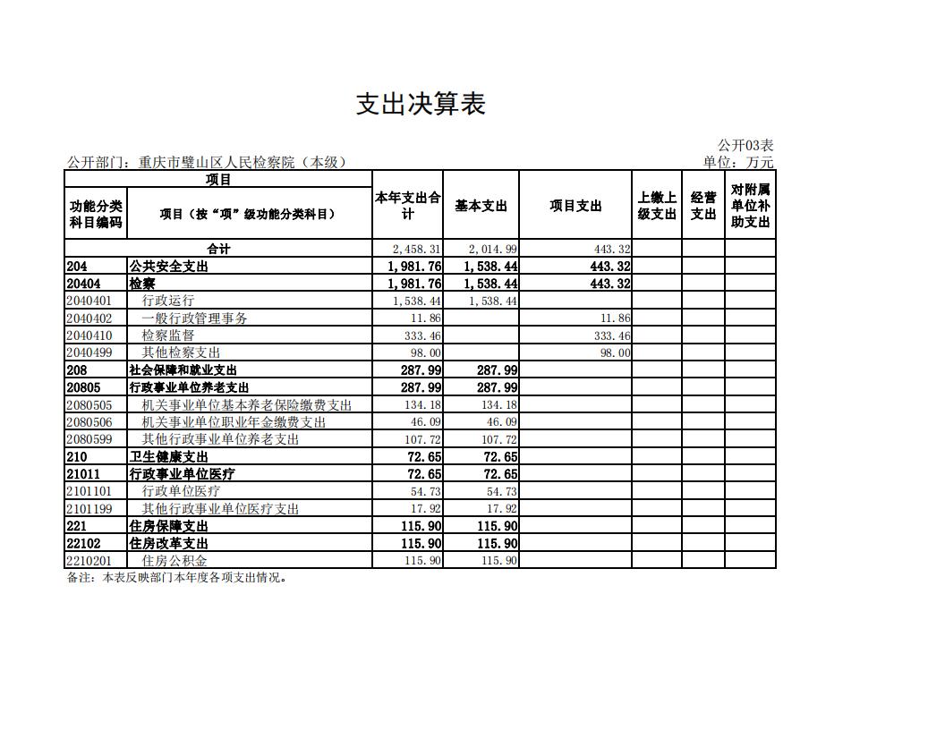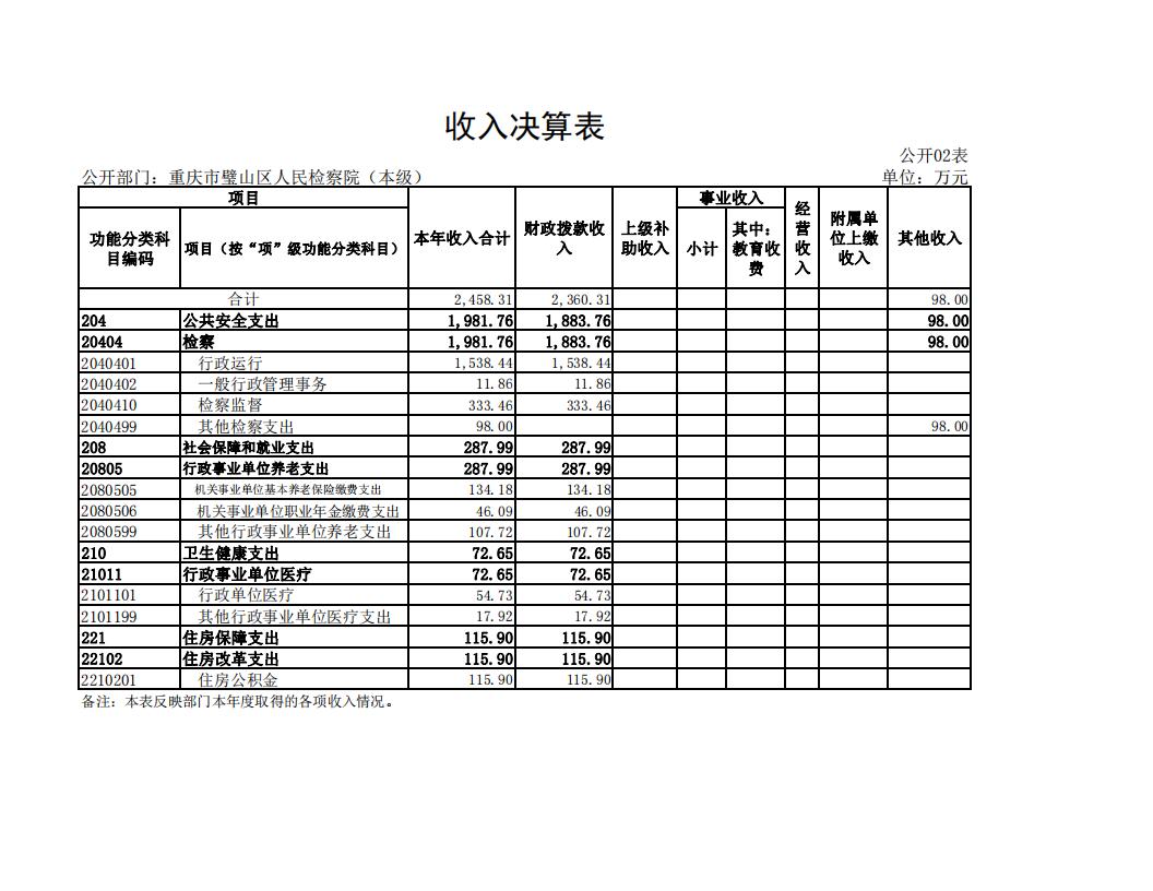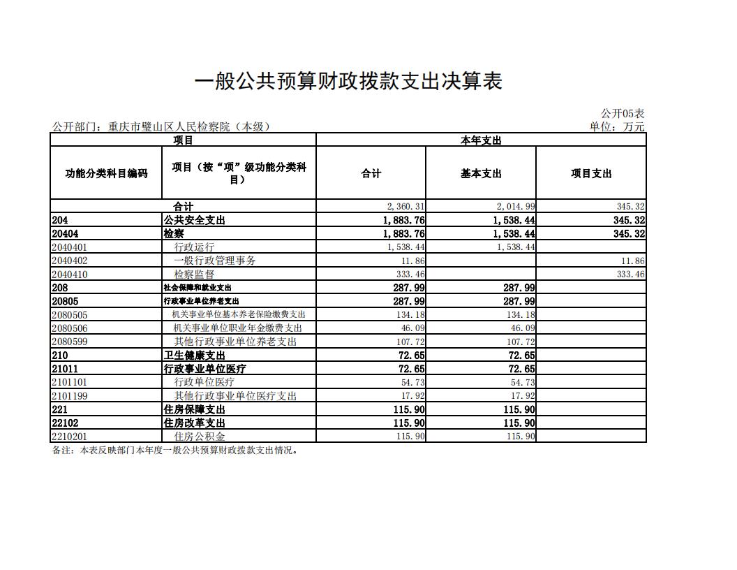 2022年重庆市璧山区人民检察院决算公开