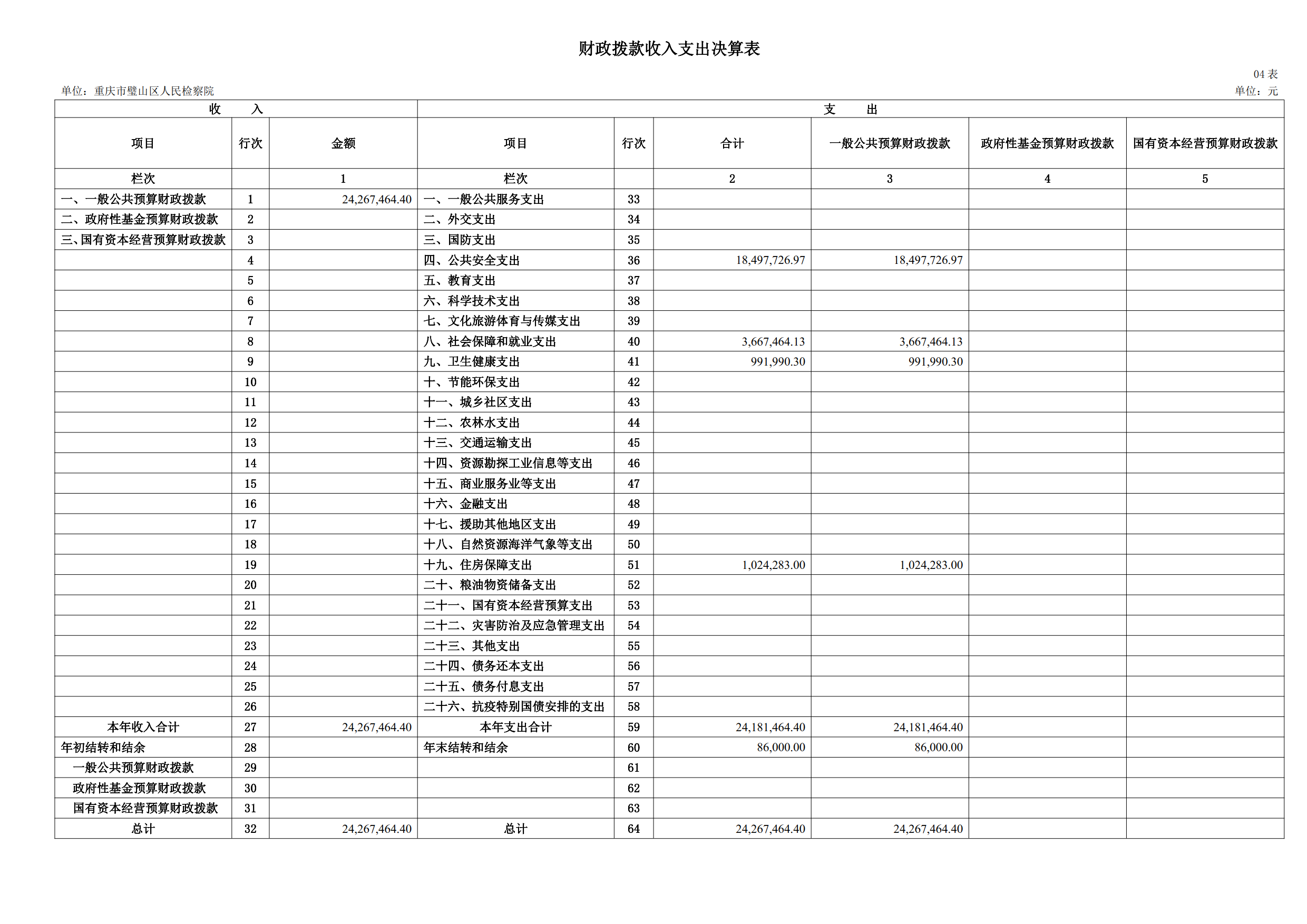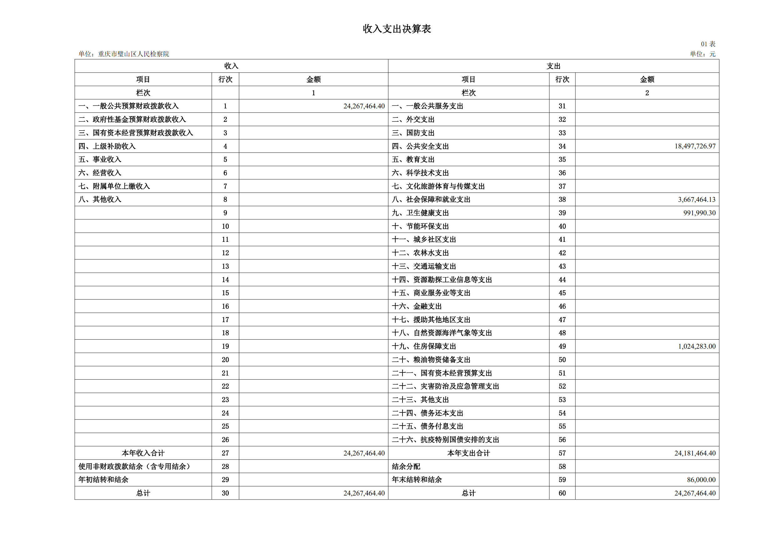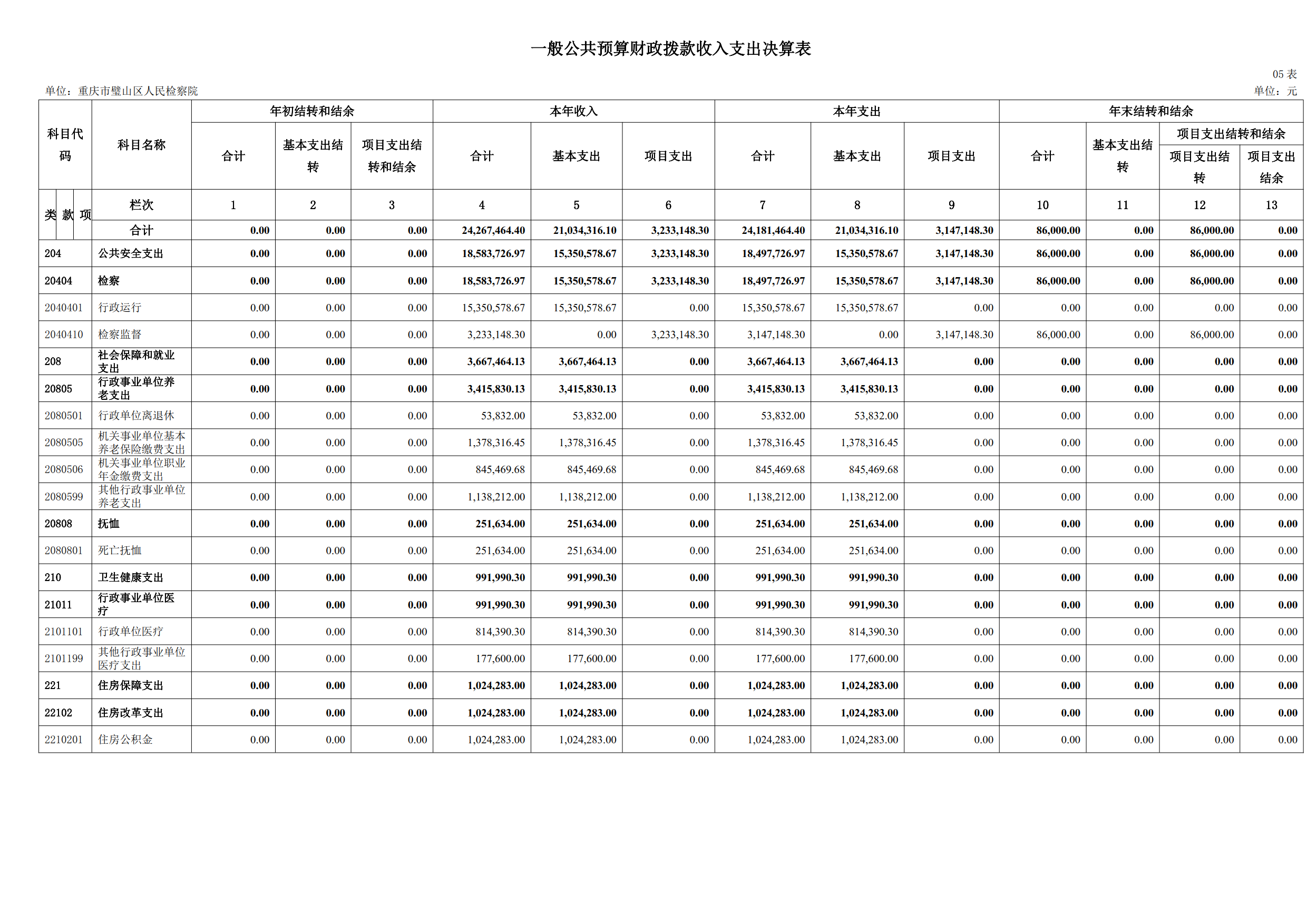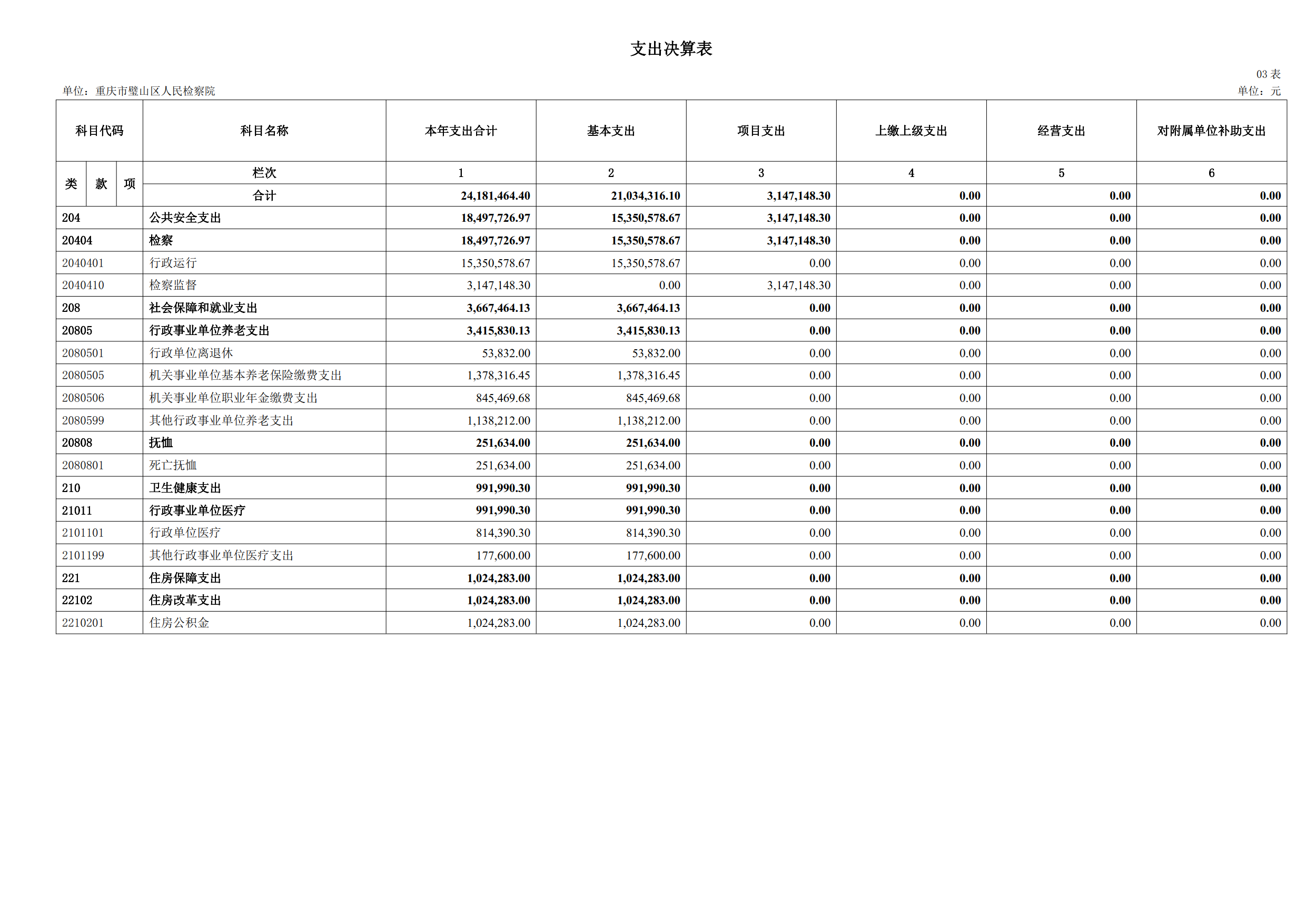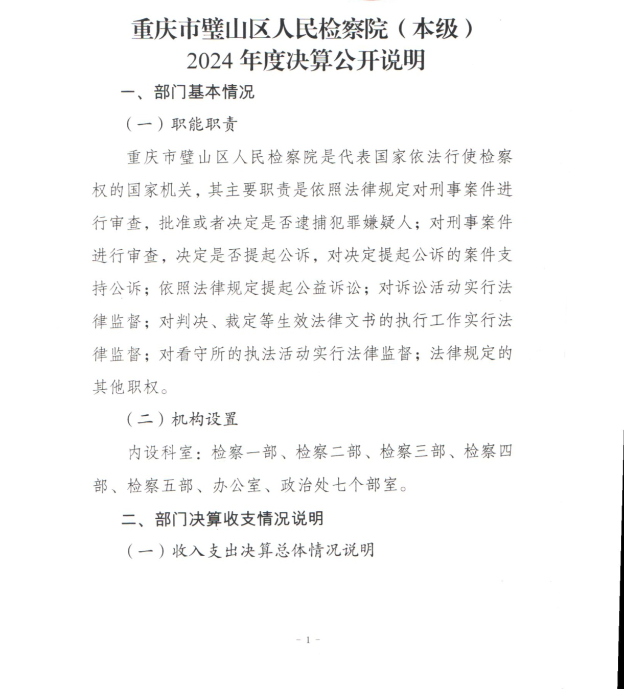 2024年重庆市璧山区人民检察院决算公开