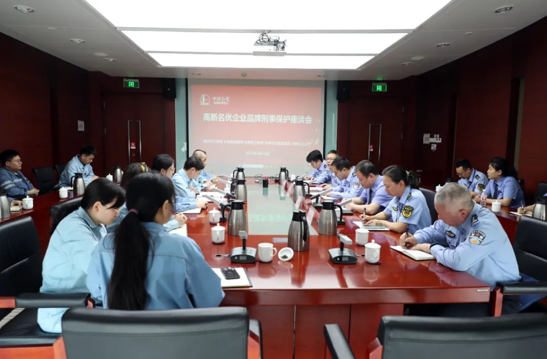 随后,重庆市公安局打假总队、长寿区检察院、长寿区公安局、长寿区市场监督管理局在中国石化集团重庆川维化工有限公司组织召开高新名优企业品牌刑事保护座谈会。长寿区检察院以“强化知识产权保护,助力企业创新发展”为主题,介绍了知识产权保护的重要性、相关检察职能及履职情况等内容,并就企业知识产权保护存在的难点堵点痛点问题提出应对和优化建议,引导企业进一步强化知识产权保护意识,并鼓励企业加大创新研发力度,培育打造高价值专利,进一步提升企业生产力和竞争力。