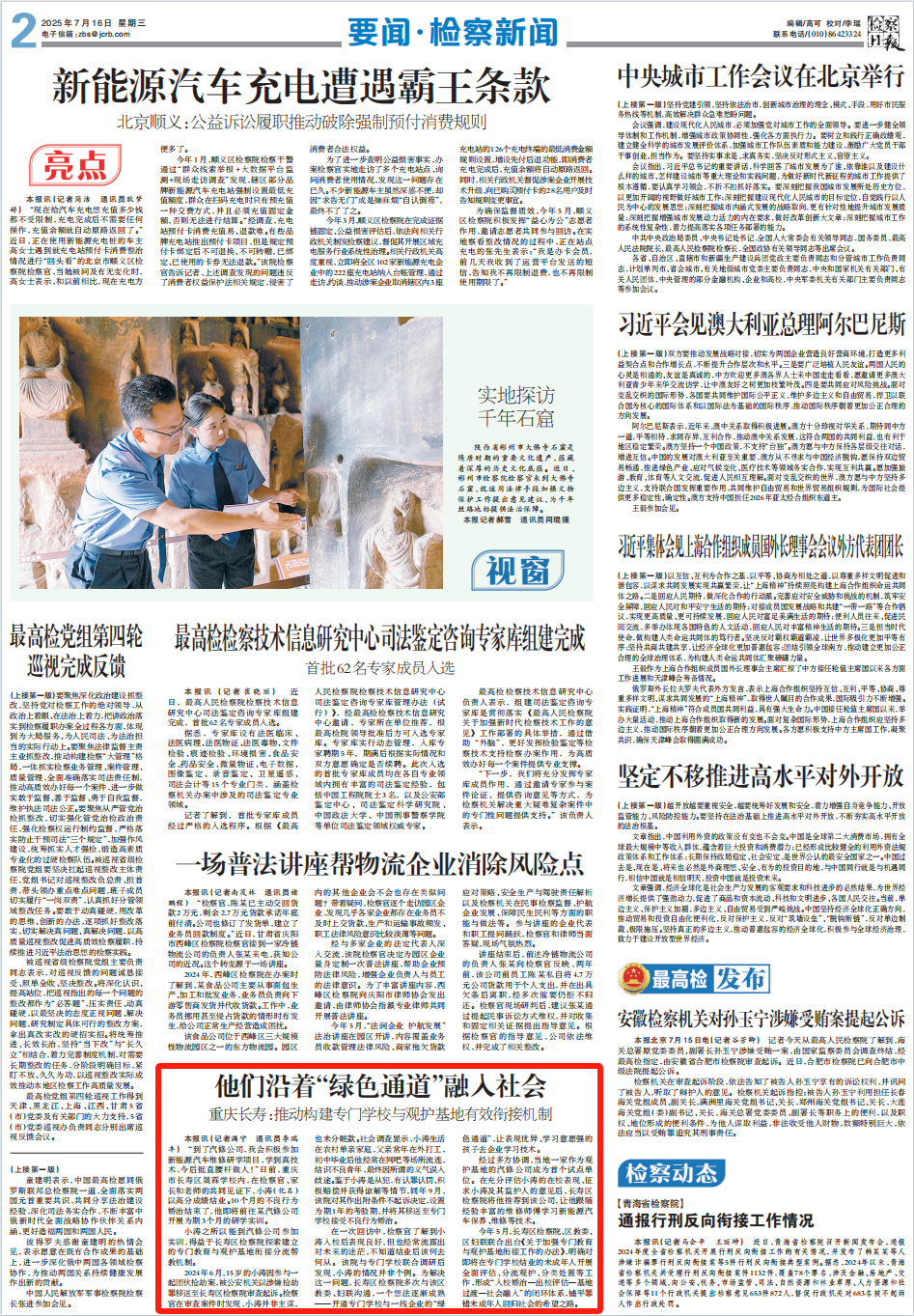 2025年7月16日,《检察日报》第2版刊登《他们沿着“绿色通道”融入社会——重庆长寿:推动构建专门学校与观护基地有效衔接机制》一文,内容如下: