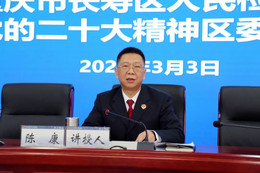 近日,长寿区检察院党组书记、检察长陈康作为区委宣讲团成员,以“学深悟透党的二十大精神,推动检察机关依法能动履职”为题向全院干警职工宣讲党的二十大精神。