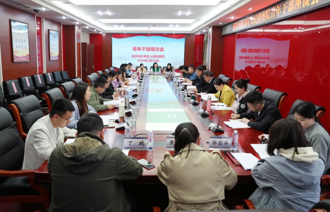 为着眼检察队伍“后继有人”根本大计,聚焦锻造忠诚干净担当过硬青年检察干部队伍,3月26日,长寿区检察院召开青年干部座谈会,院党组书记、检察长刘海东,院党组成员、政治部主任陈仁祥与广大青年检察干警面对面交流感想,实打实听取意见,共同优化青年检察干警培养措施。全院40岁以下青年检察干警参加此次会议,全院荣获全市检察机关十佳公诉人、业务标兵等荣誉的优秀检察官受邀参加会议。