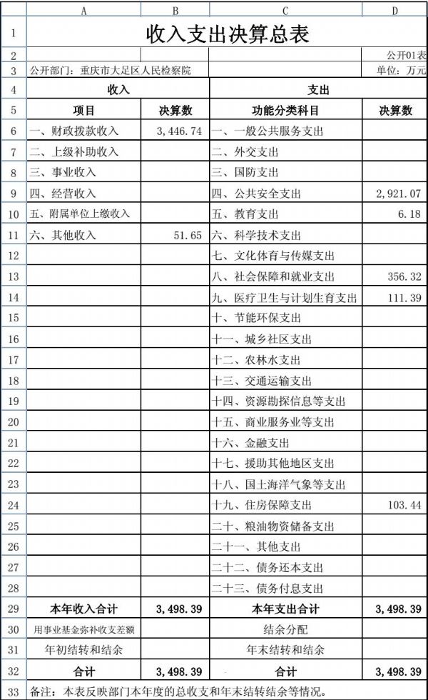 1.收入情况。本部门2018年度财政拨款收入3,446.74万元,较上年决算数减少55.06万元,下降1.57%。主要原因是人员退休3人,死亡1人,人员经费支出减少。较年初预算数增加418.73万元,增长13.83%。主要原因是执行中追加2017年度政府目标绩效奖金,2018年行政事业单位基本工资调整增资,市级机关人民警察法定工作日之外加班补贴,2017年退休健康休养费,2018年行政事业单位离休费调整,退休“中人”一次性退休补贴,职工死亡丧葬抚恤费,检察办案业务经费,司法救助金。此外,年初财政拨款结转和结余0.00万元。