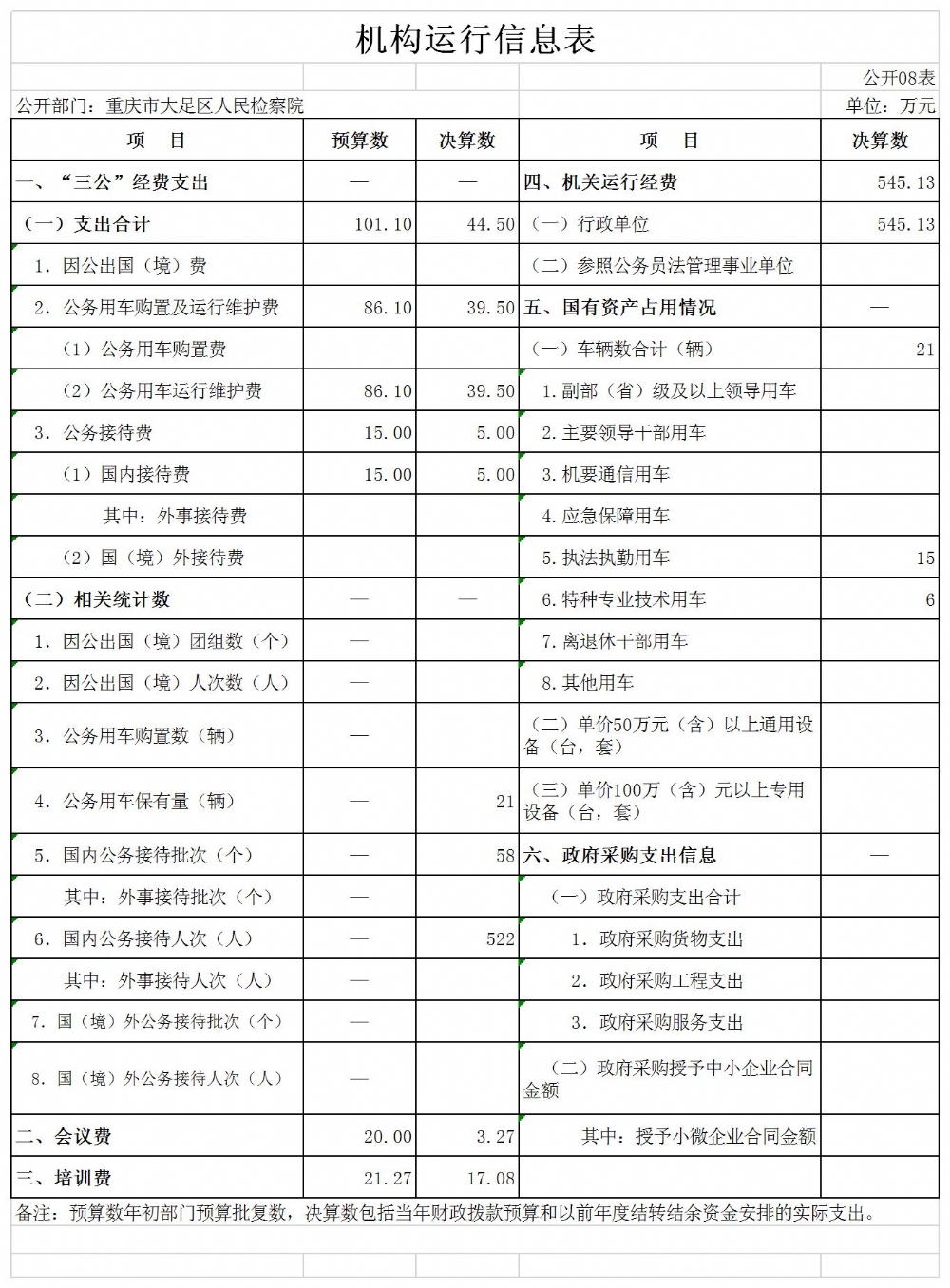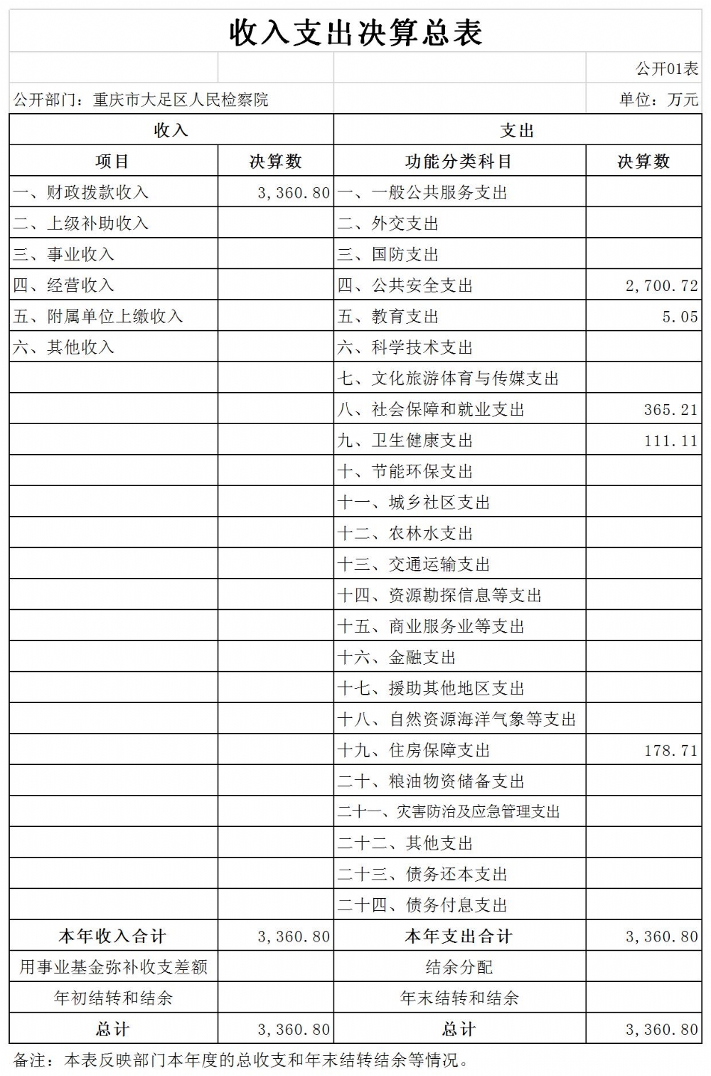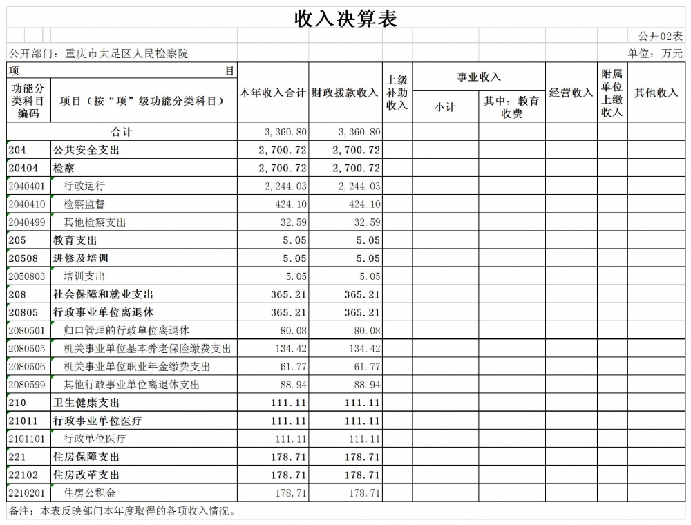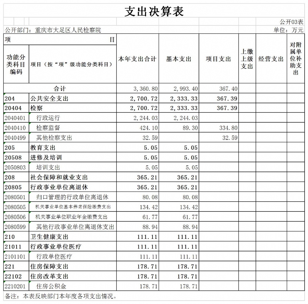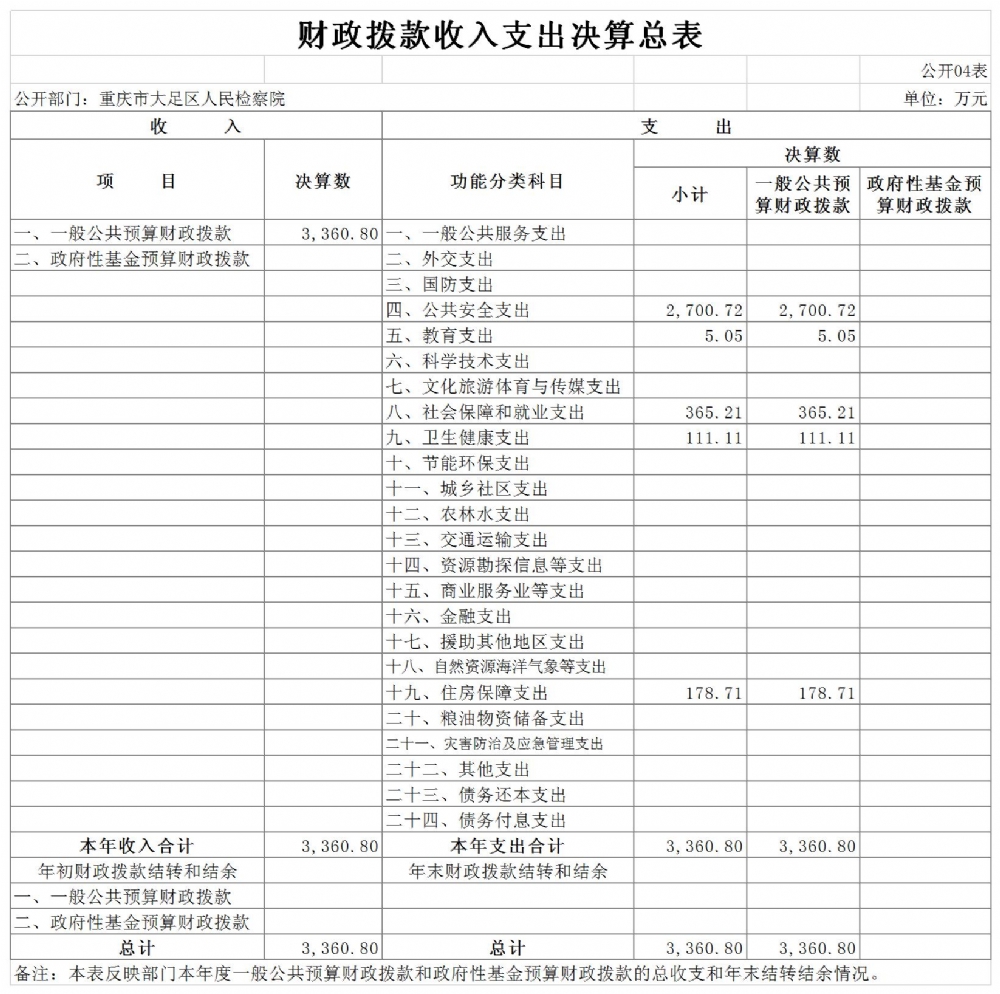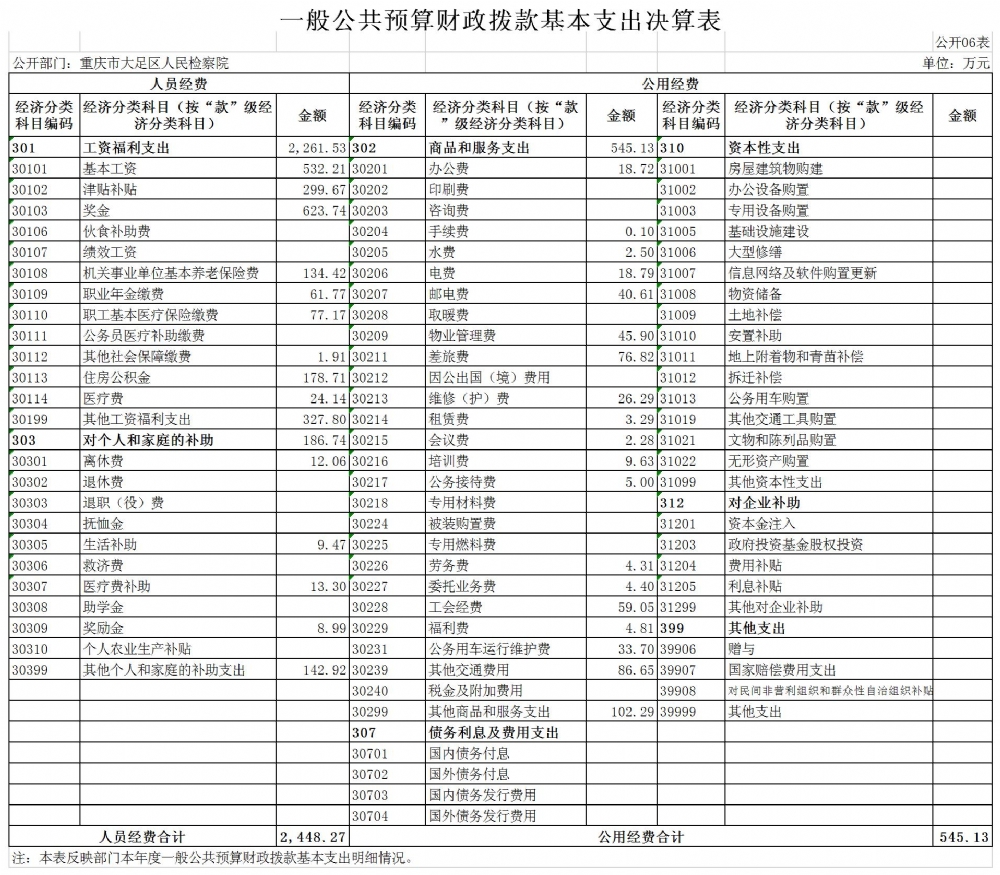 重庆市大足区人民检察院2019年度决算公开