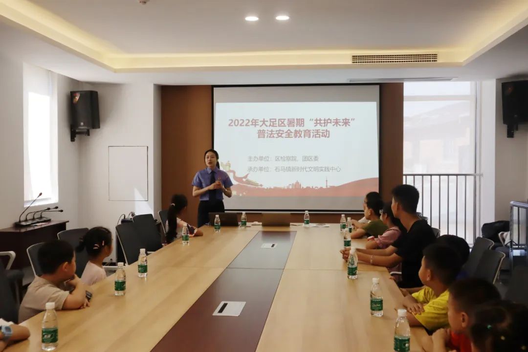 “同学们,快乐的暑假到来了,但安全和法治意识可不能‘放假’松懈……”7月8日,大足区检察院联合团区委前往辖区石马镇新时代文明实践中心,开展2022年暑期“共护未来”普法安全教育活动。