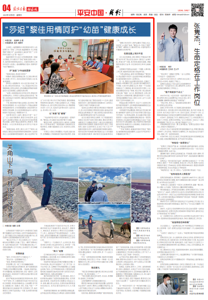 2022年10月9日,《法治日报》第4版“平安中国·身影”专栏刊登《“莎姐”黎佳用情呵护“幼苗”健康成长》一文,内容如下: