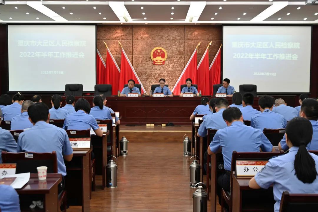 为深入落实全国检察机关加强政治建设暨深化检察改革与理论研究工作推进会精神,落实好“质量建设年”安排部署,7月15日,大足区检察院结合上半年数据质效情况,召开2022年上半年数据分析研判推进会,在家班子成员、检委会专委及全院干警参加会议,院党组书记、检察长孙琳出席会议并讲话。