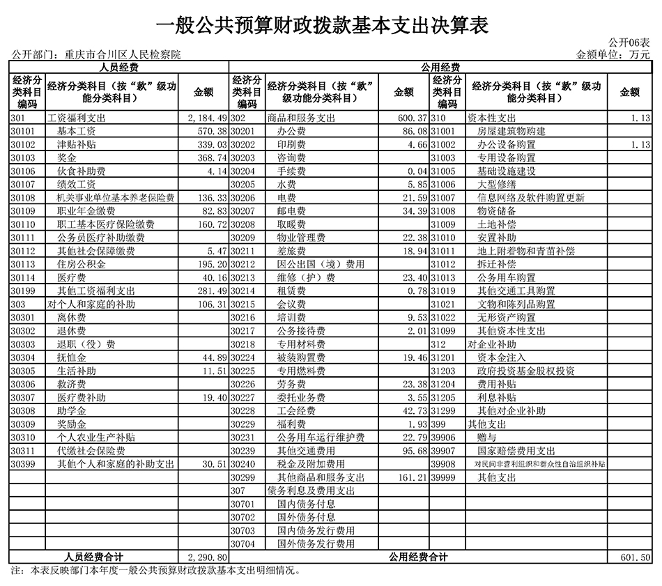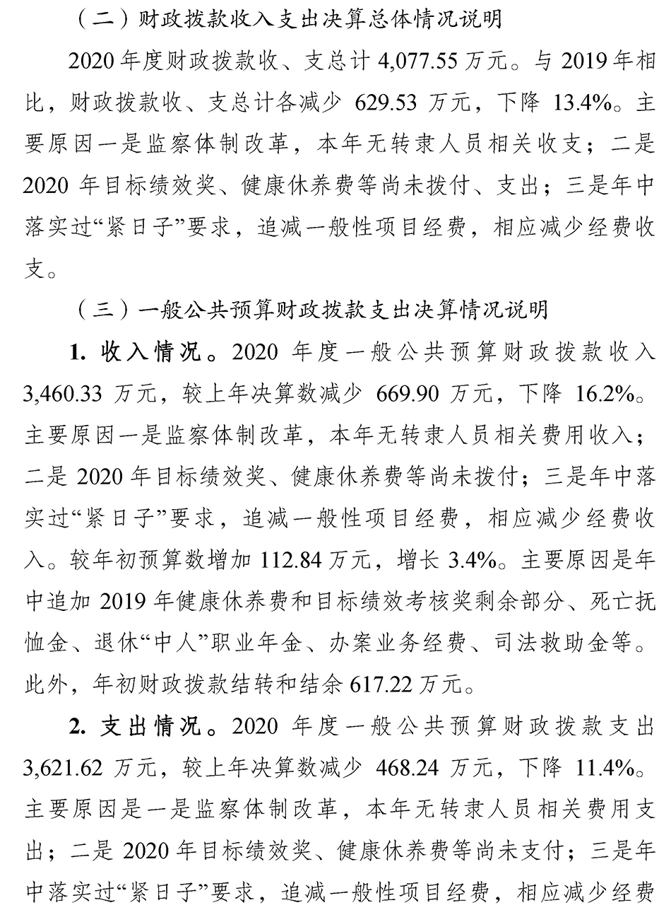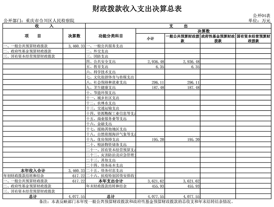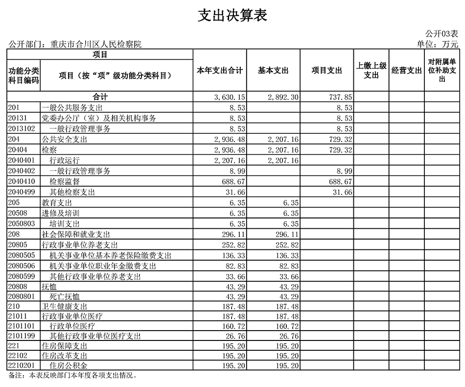 重庆市合川区人民检察院2020年度部门决算公开