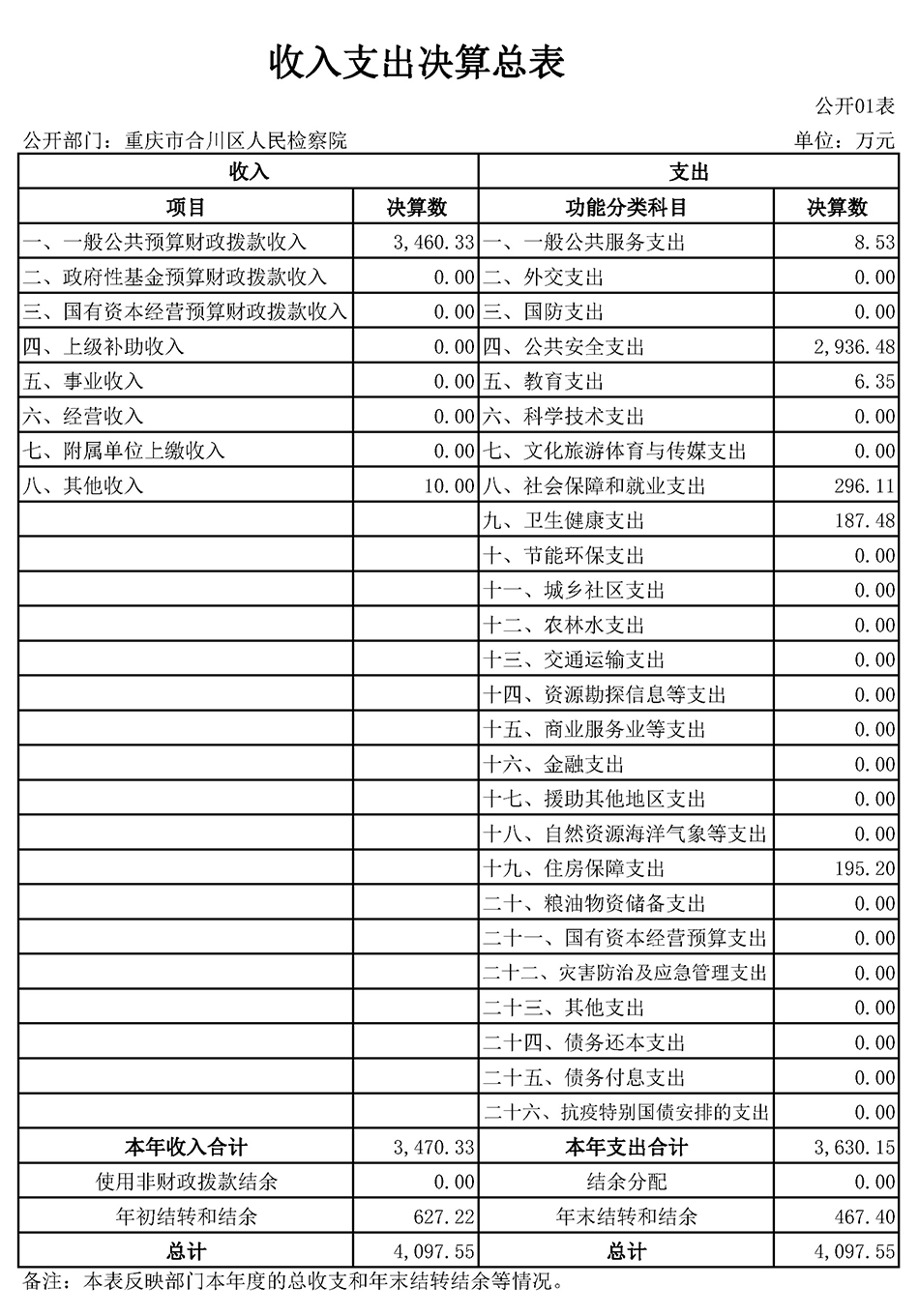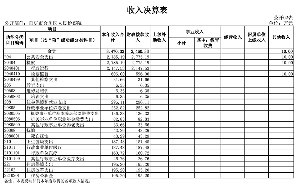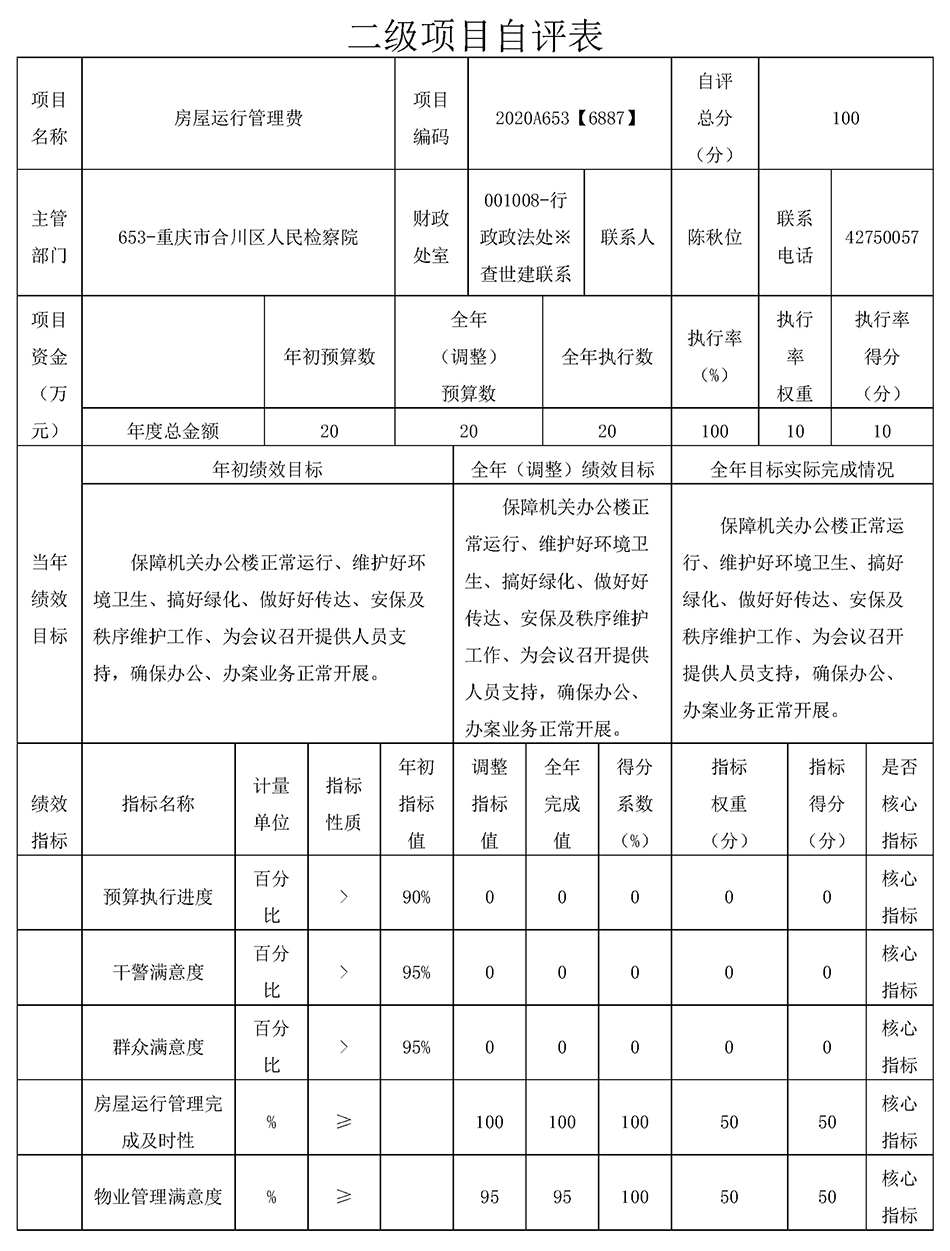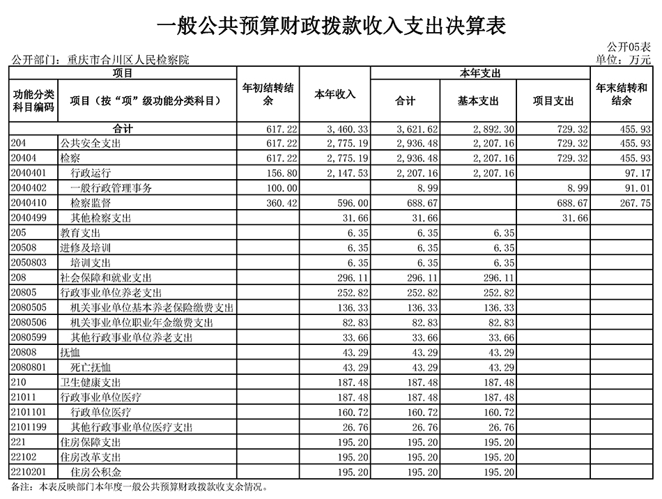 重庆市合川区人民检察院2020年度部门决算公开